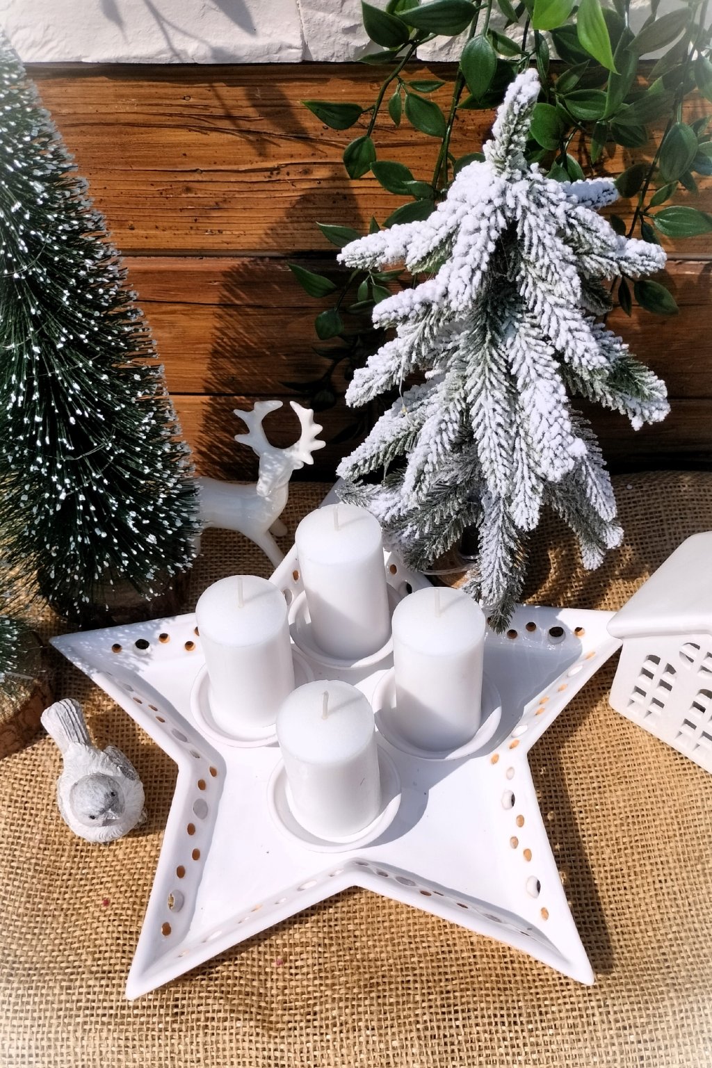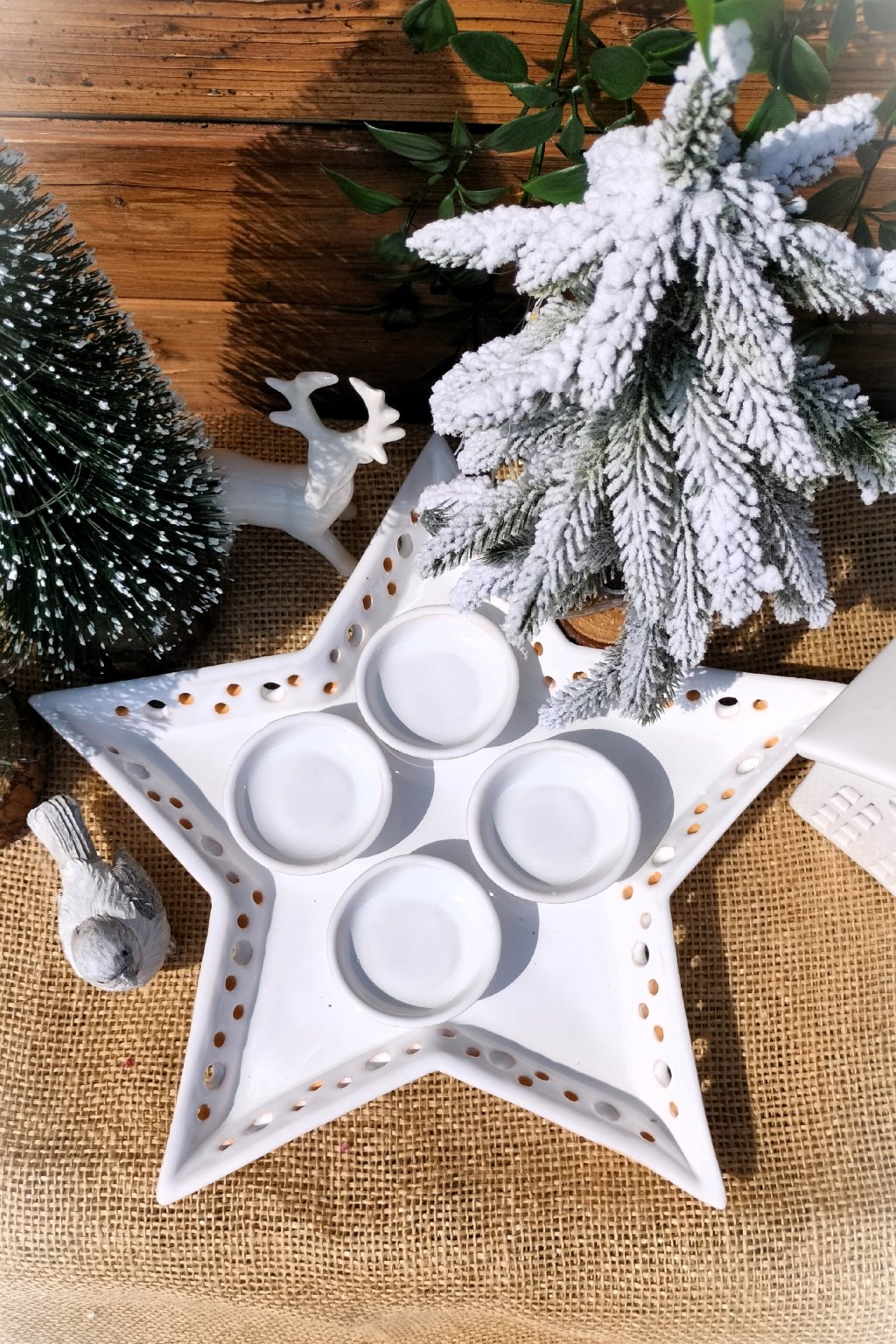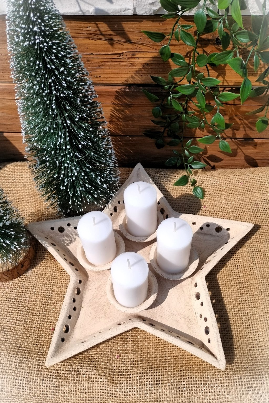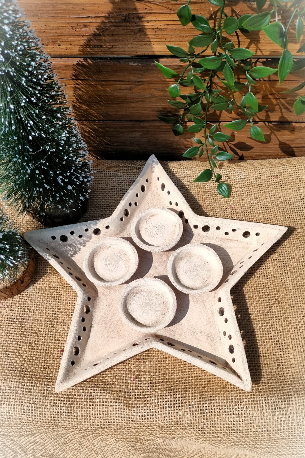 Popis: keramický dekorační adventní svícen ve tvaru hvězdy.