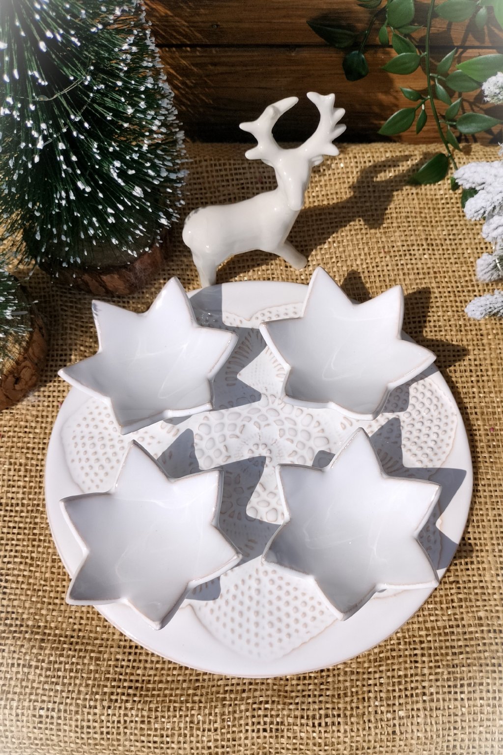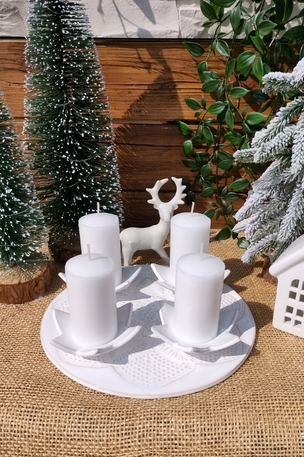 Popis: kulatý keramický dekorační adventní svícen - bílý se vzorem krajky