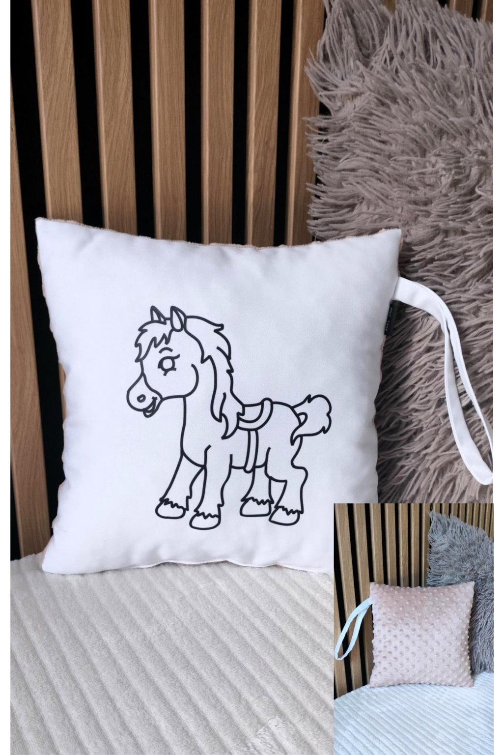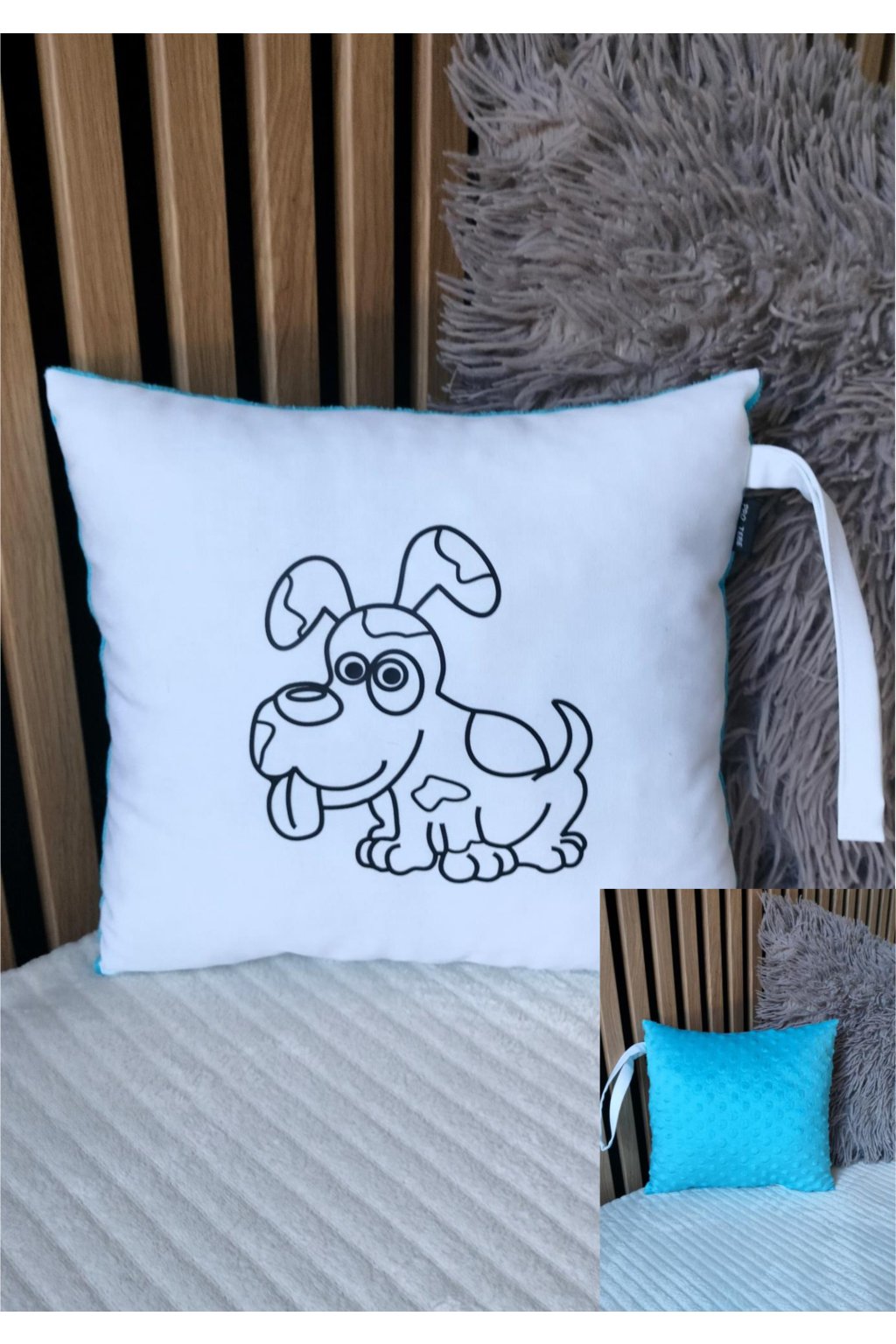 Popis: Kreativní šitý polštářek pro děti s různými motivy obrázků, které si můžete vybarvit.