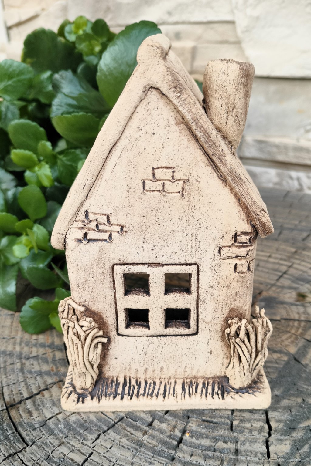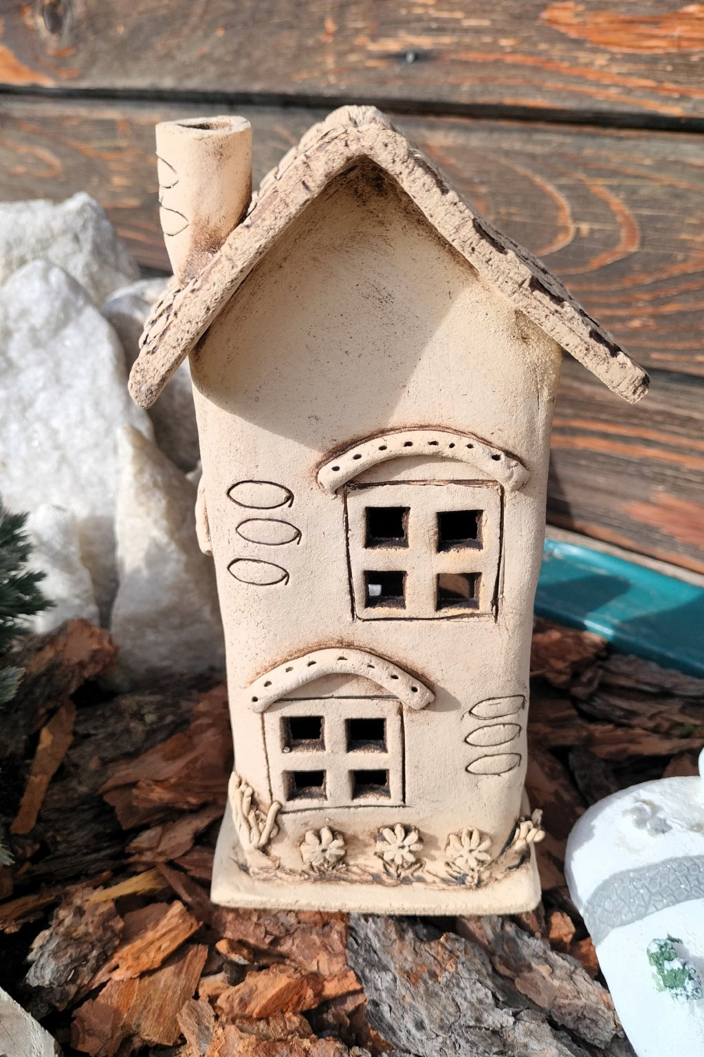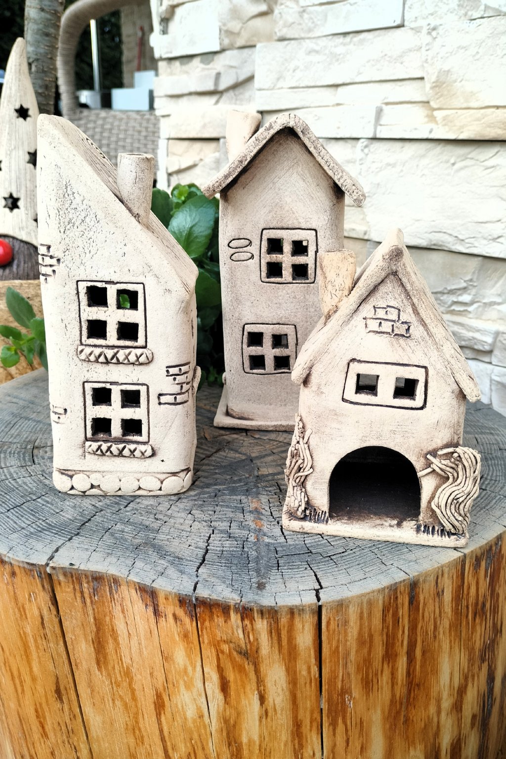 Popis: keramické domečky na svíčku - dekorace do interiéru nebo také na zahradu, terasu do truhlíků...