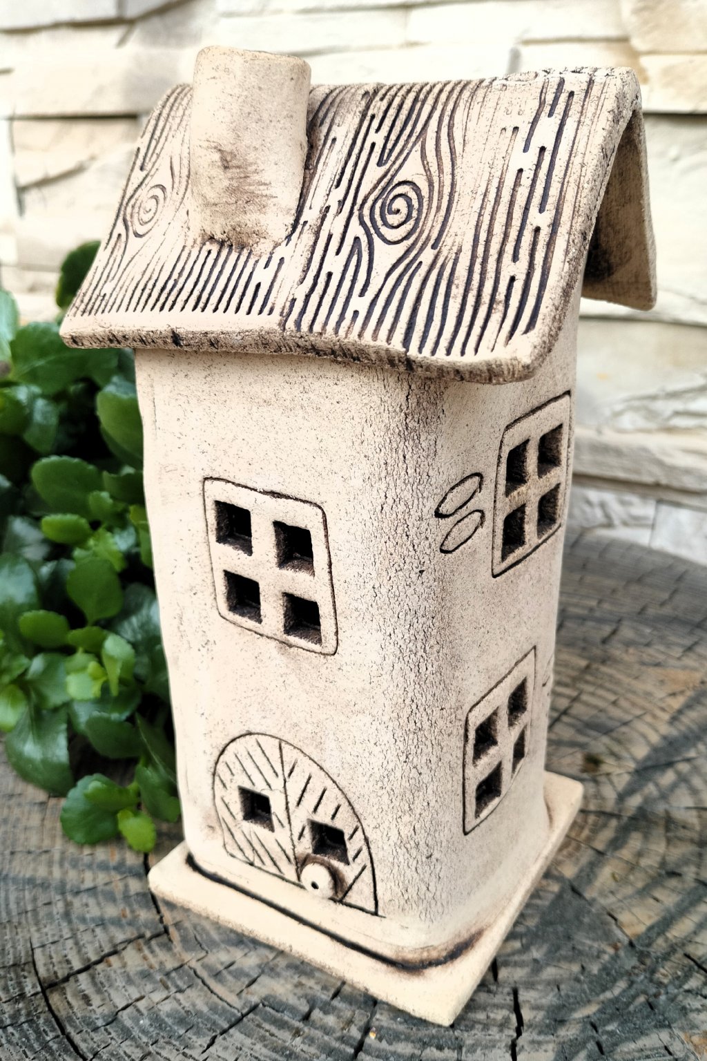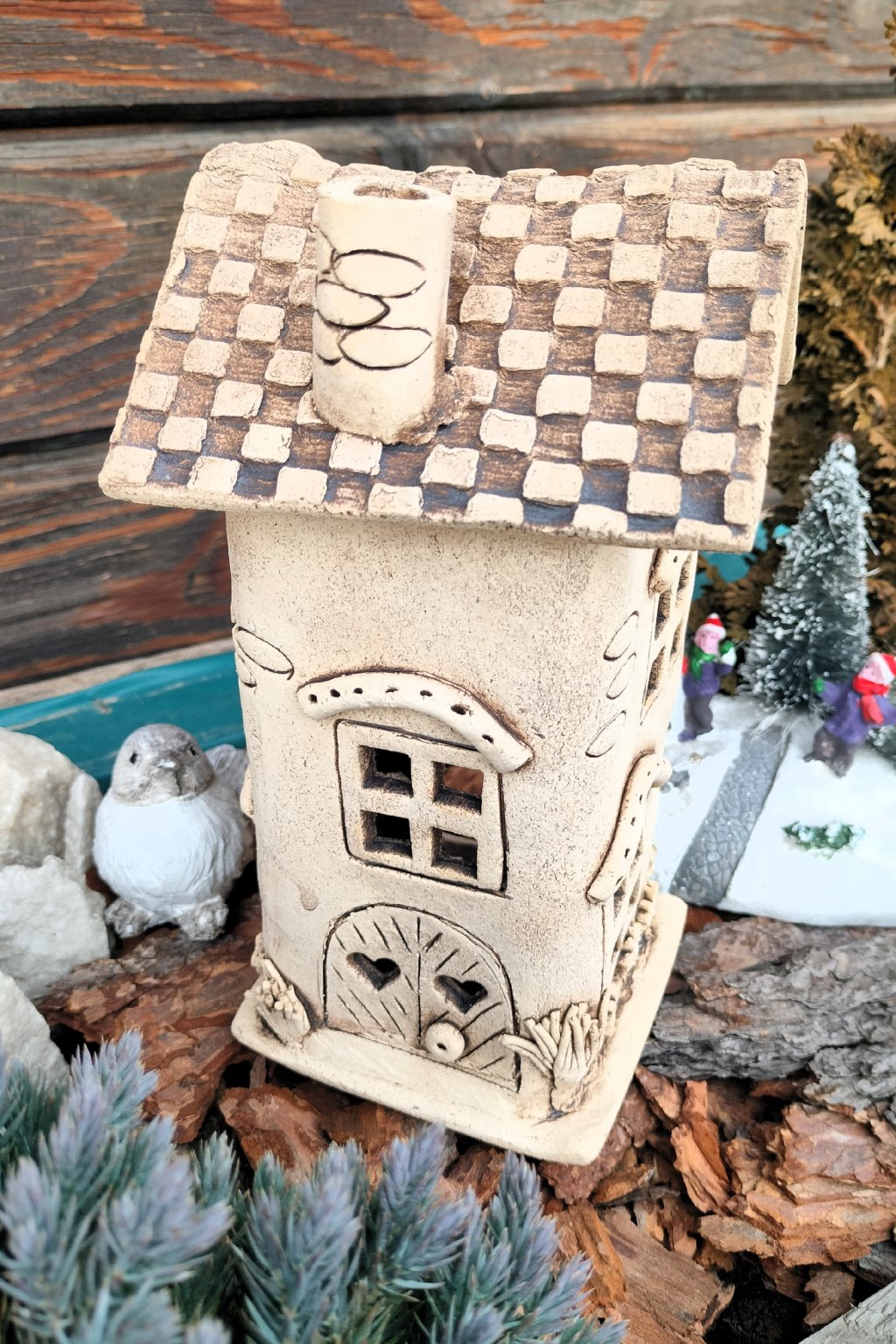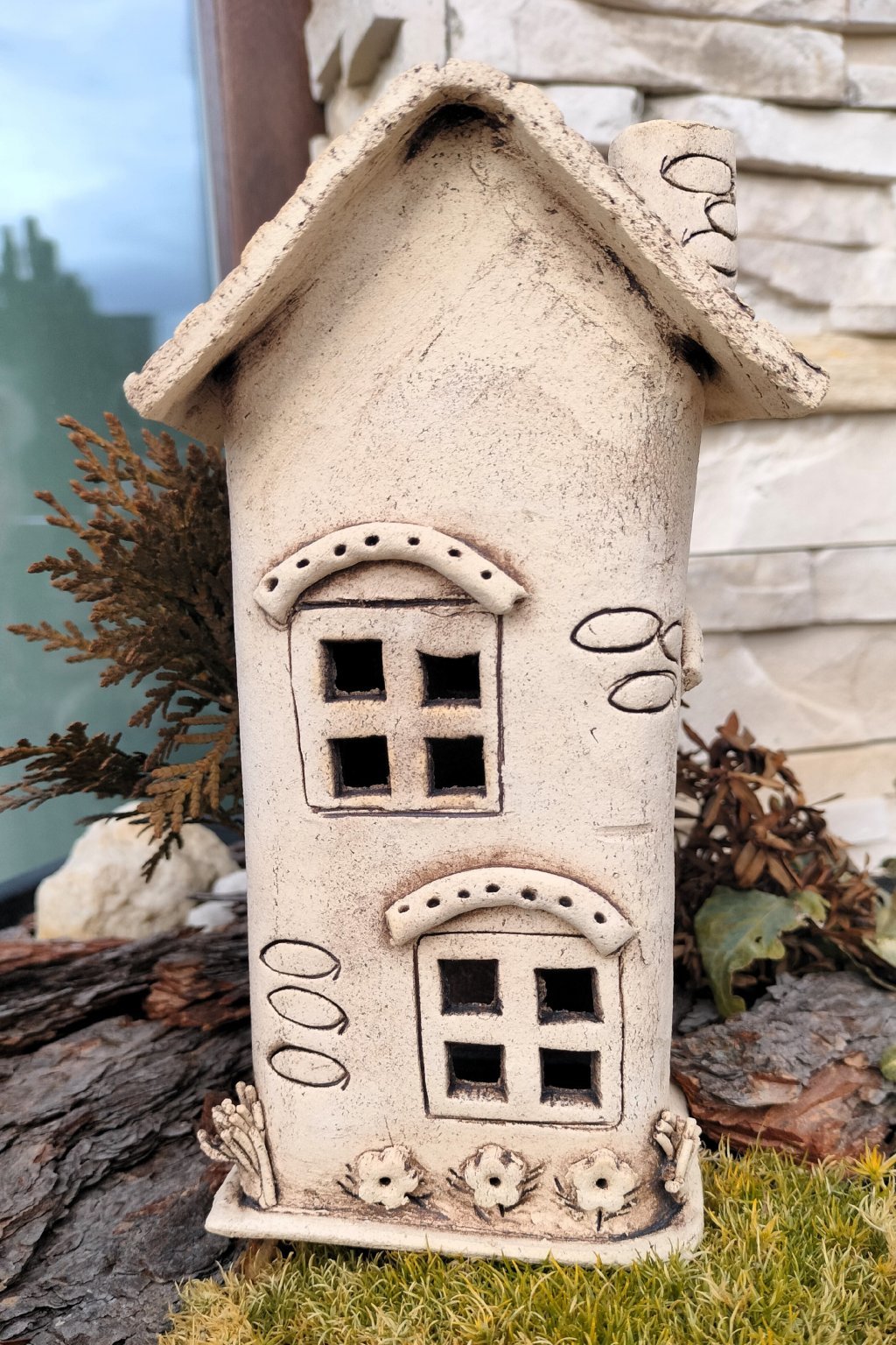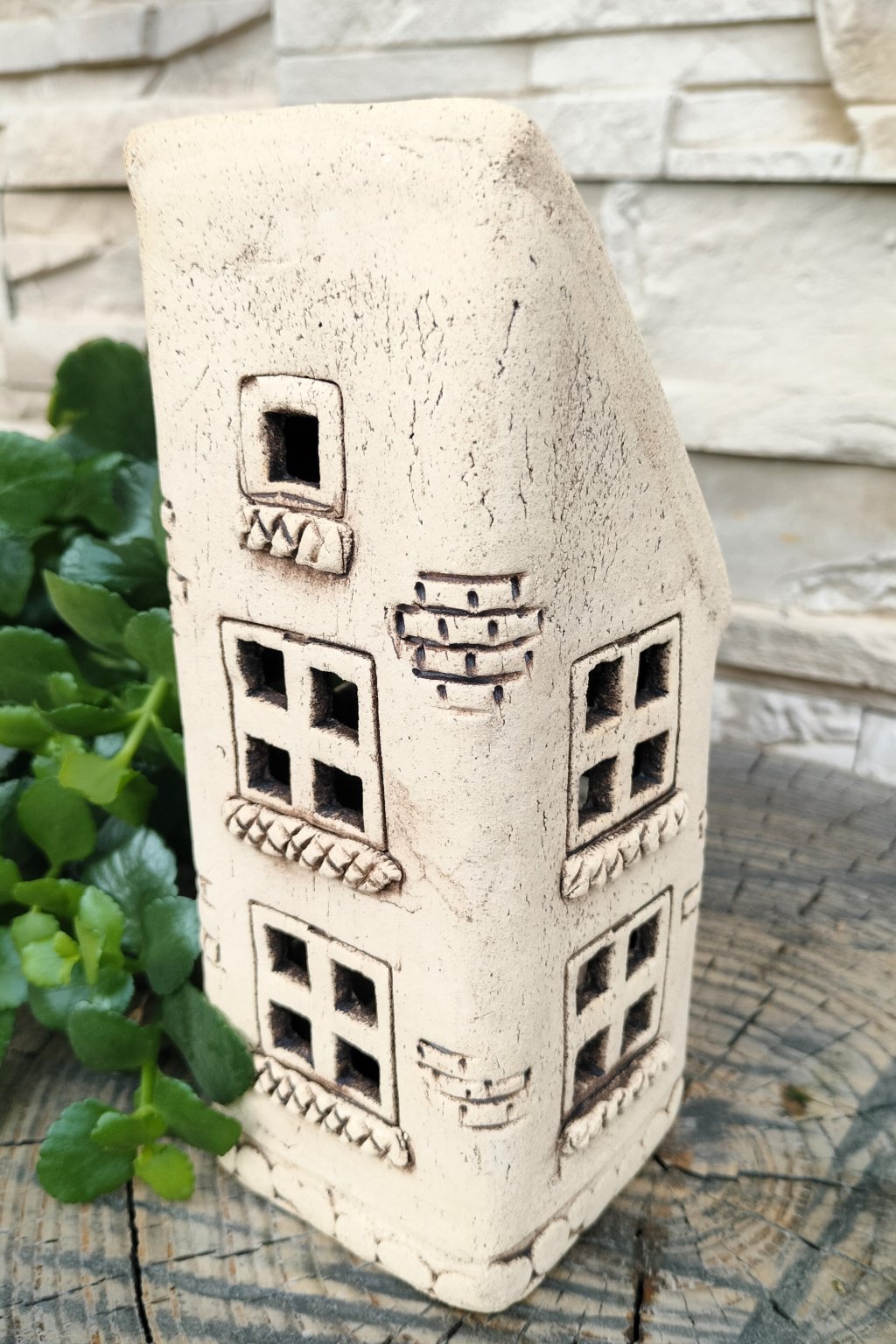 Popis: keramické domečky na svíčku - dekorace do interiéru nebo také na zahradu, terasu do truhlíků...