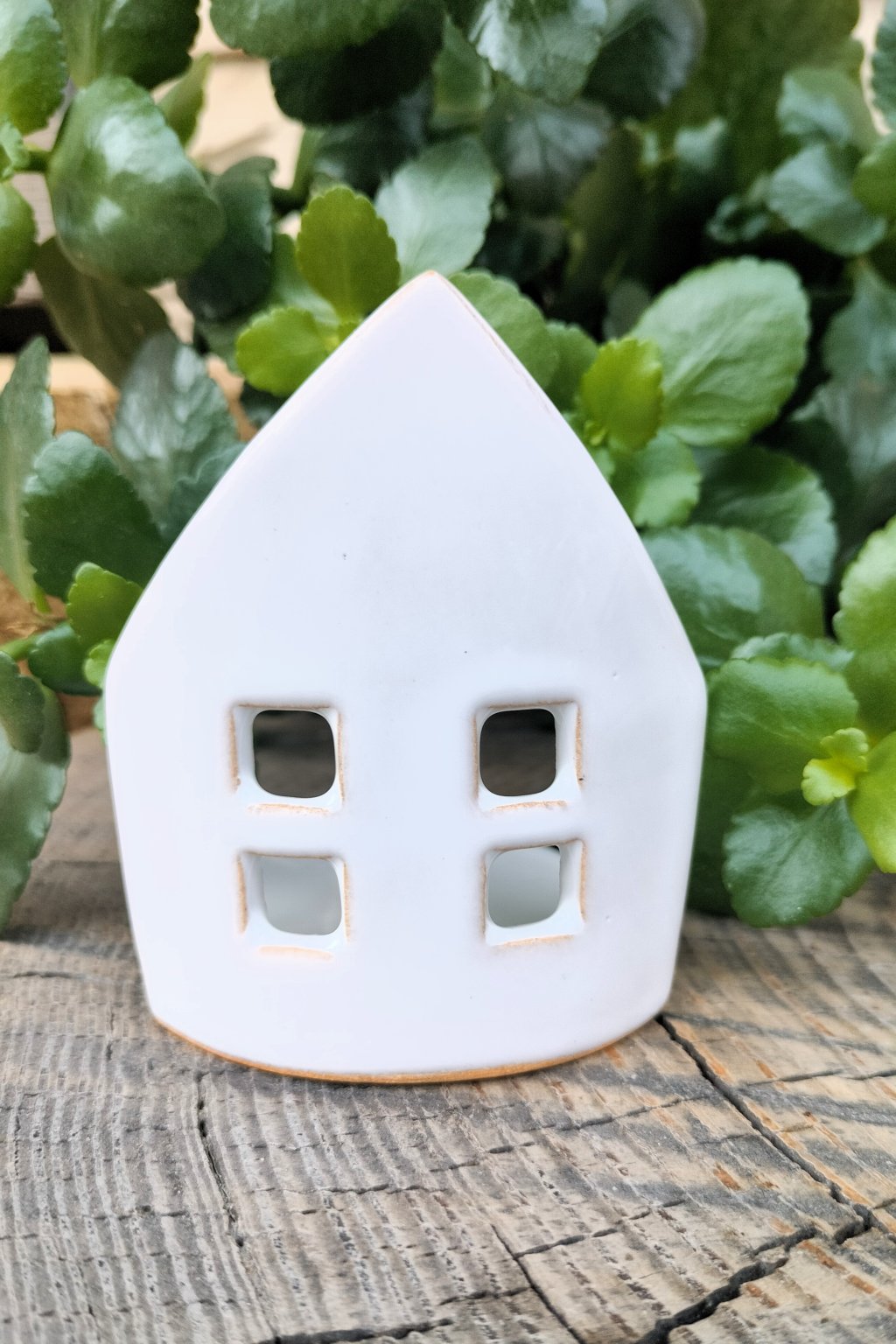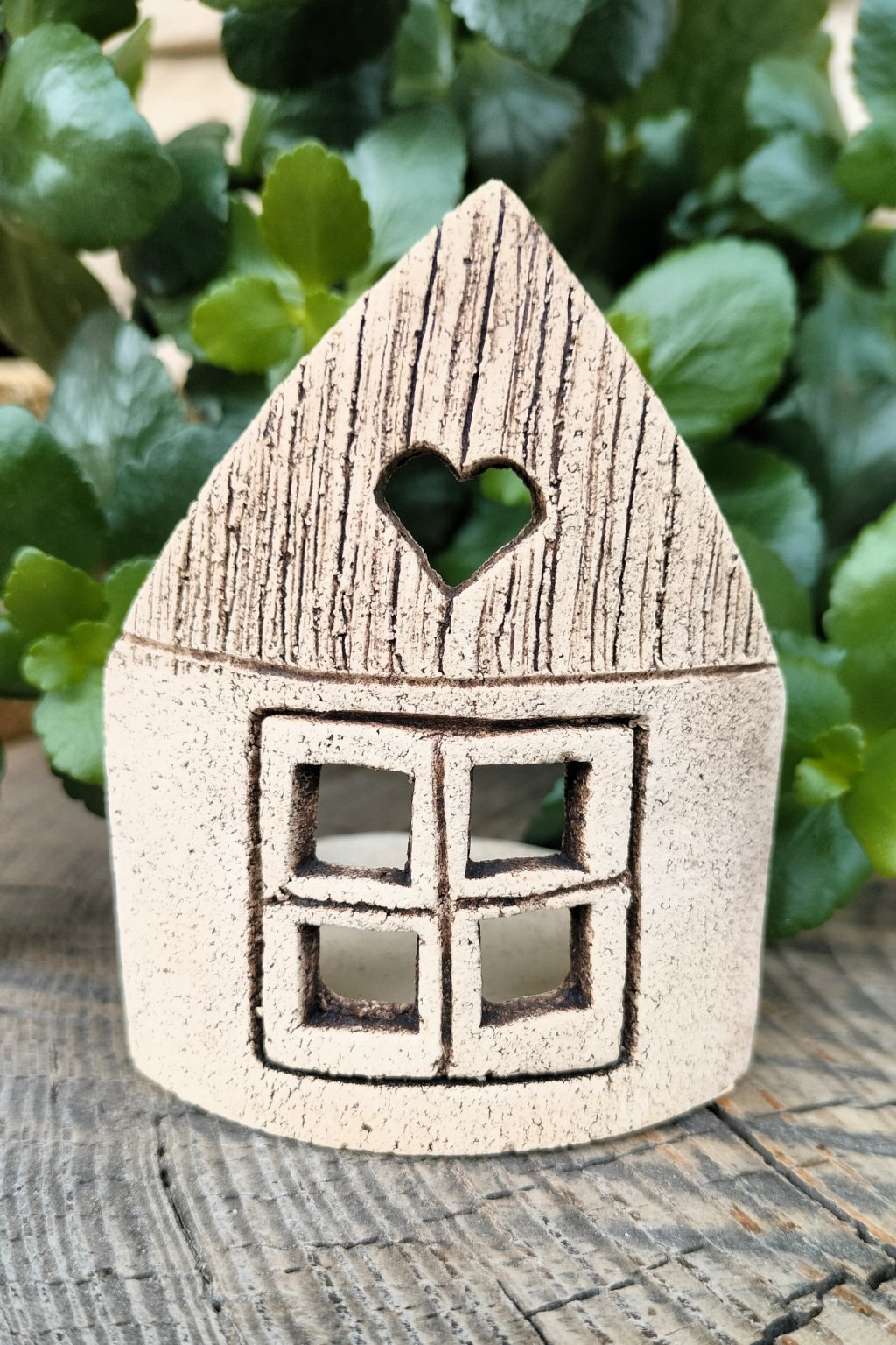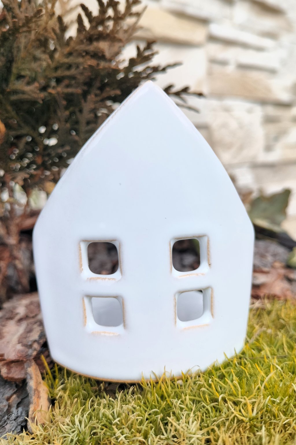 Popis: keramické dekorační domečky - dekorace na čajovou svíčku.