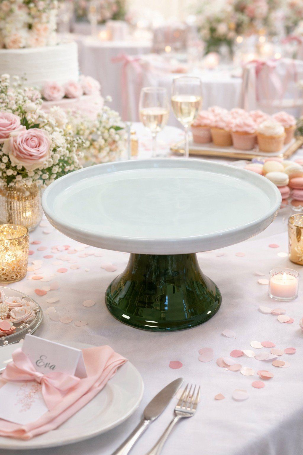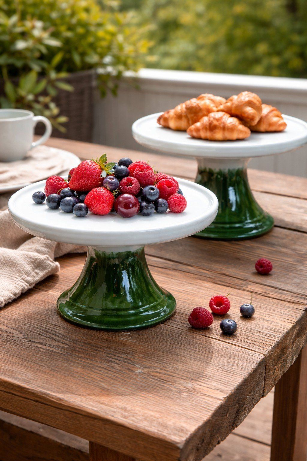 Dodejte svému stolování styl a originalitu s tímto jedinečným etažérem, který zaujme na první pohled. Kombinace bílého talíře a sytě zelené nohy vytváří design, který se hodí jak do moderního, tak i rustikálního interiéru.