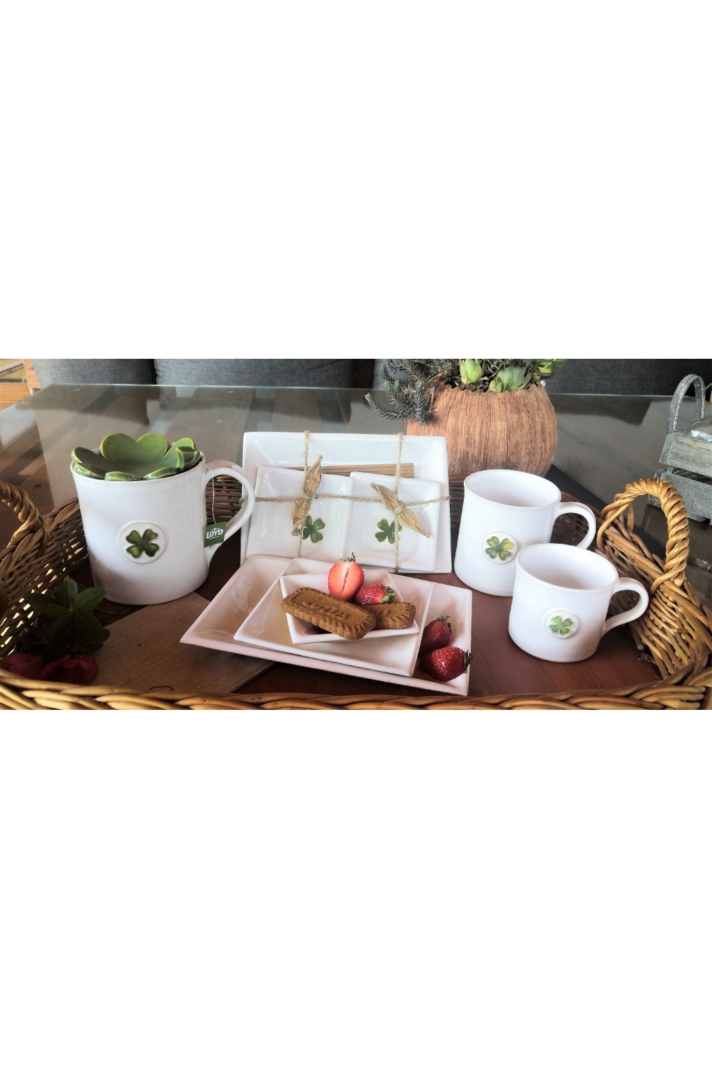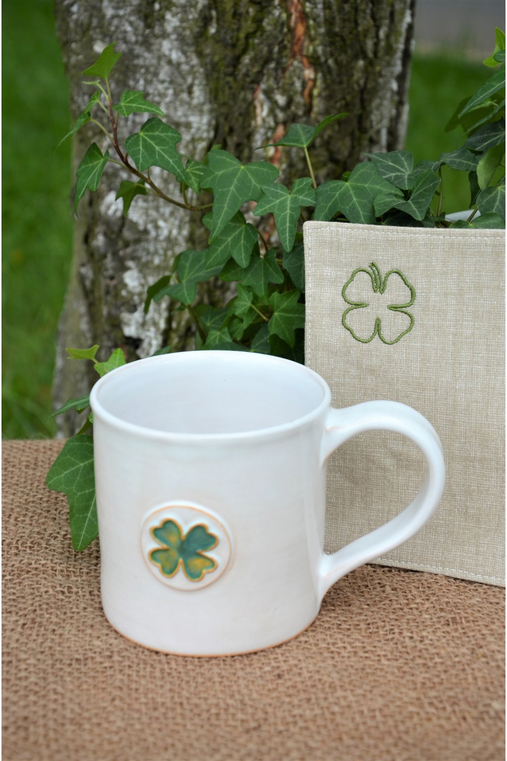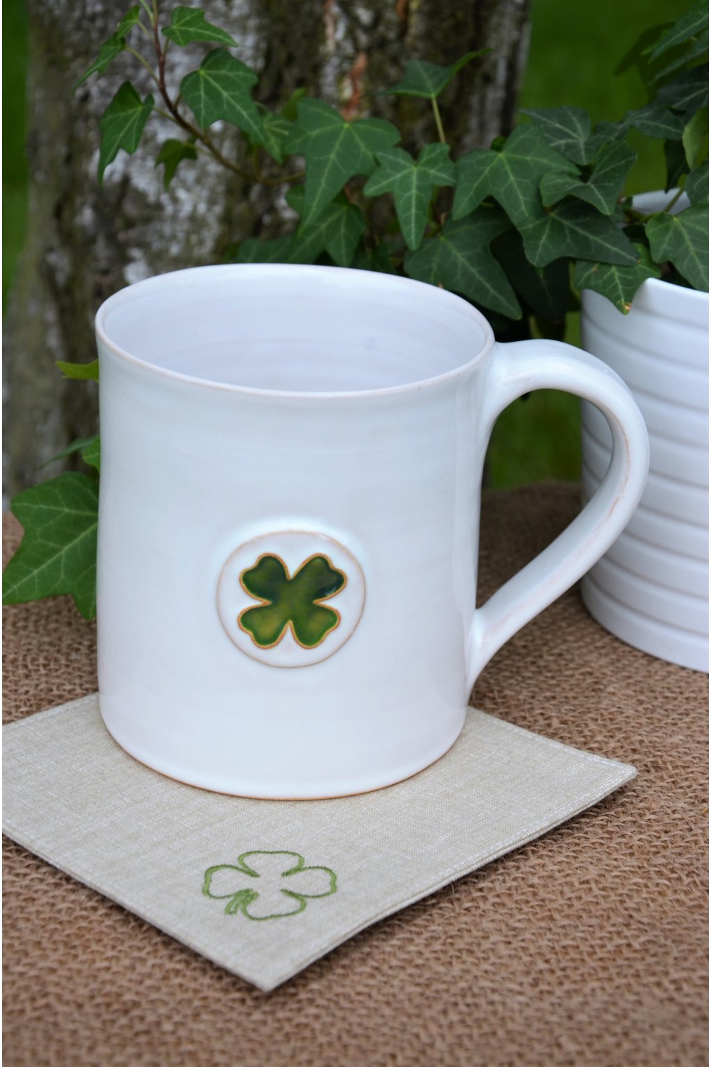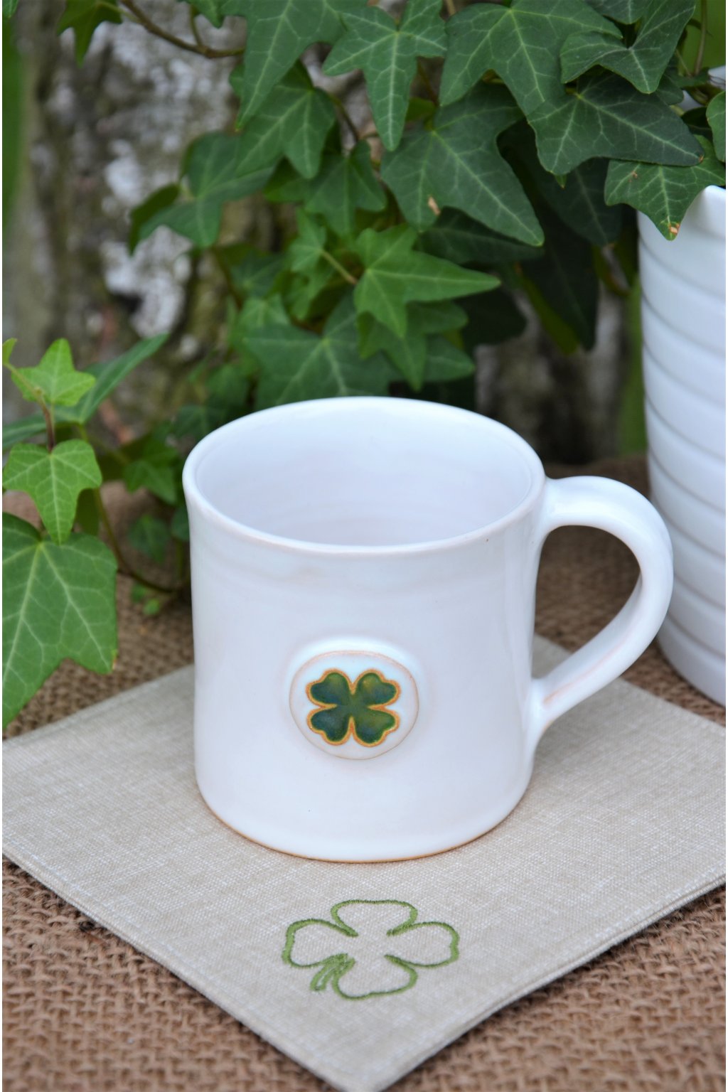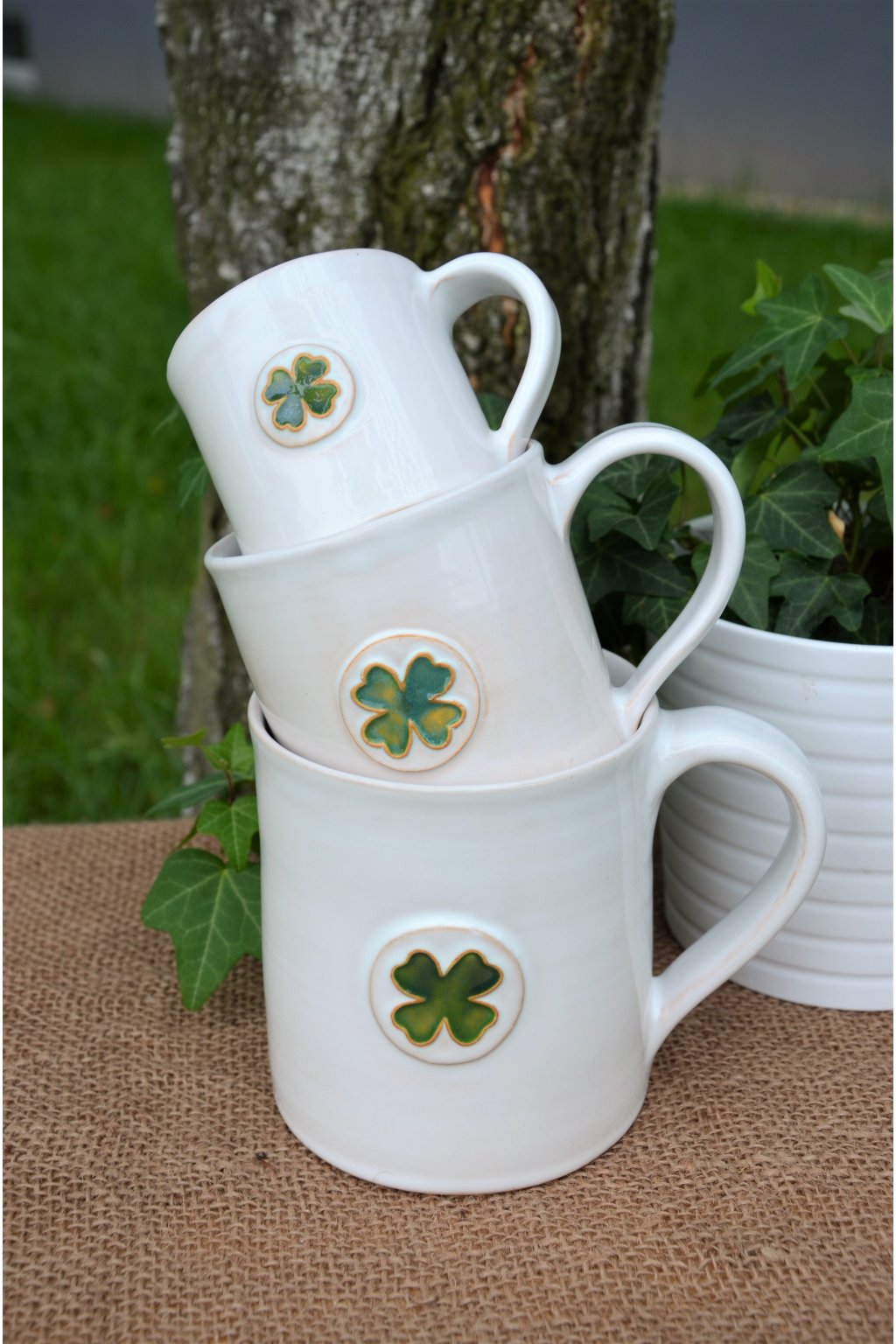 Popis: točené keramické hrníčky s dekorem čtyřlístku