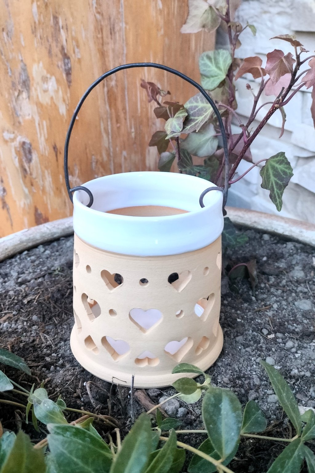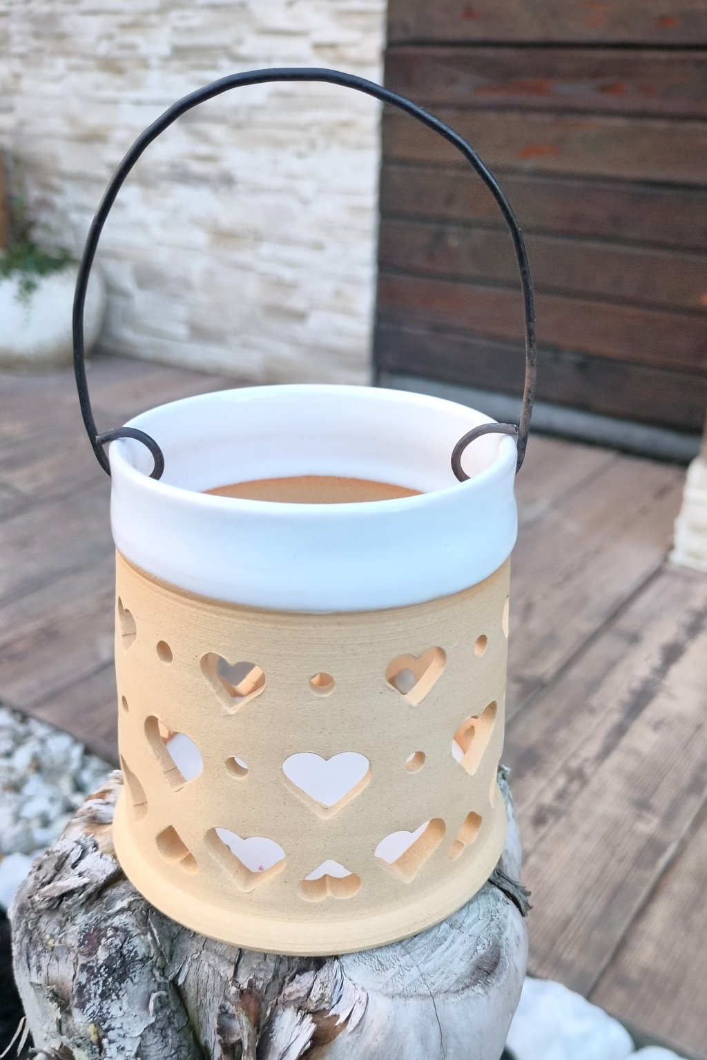 Keramická lucerna se srdíčky – světlo pro chvíle pohody