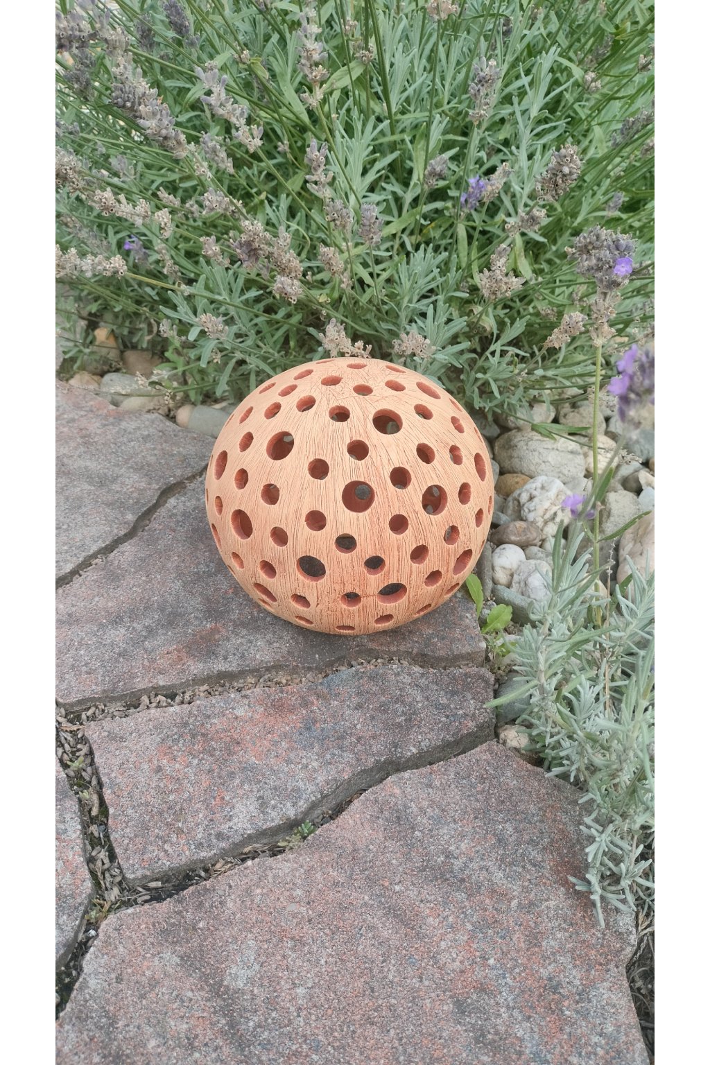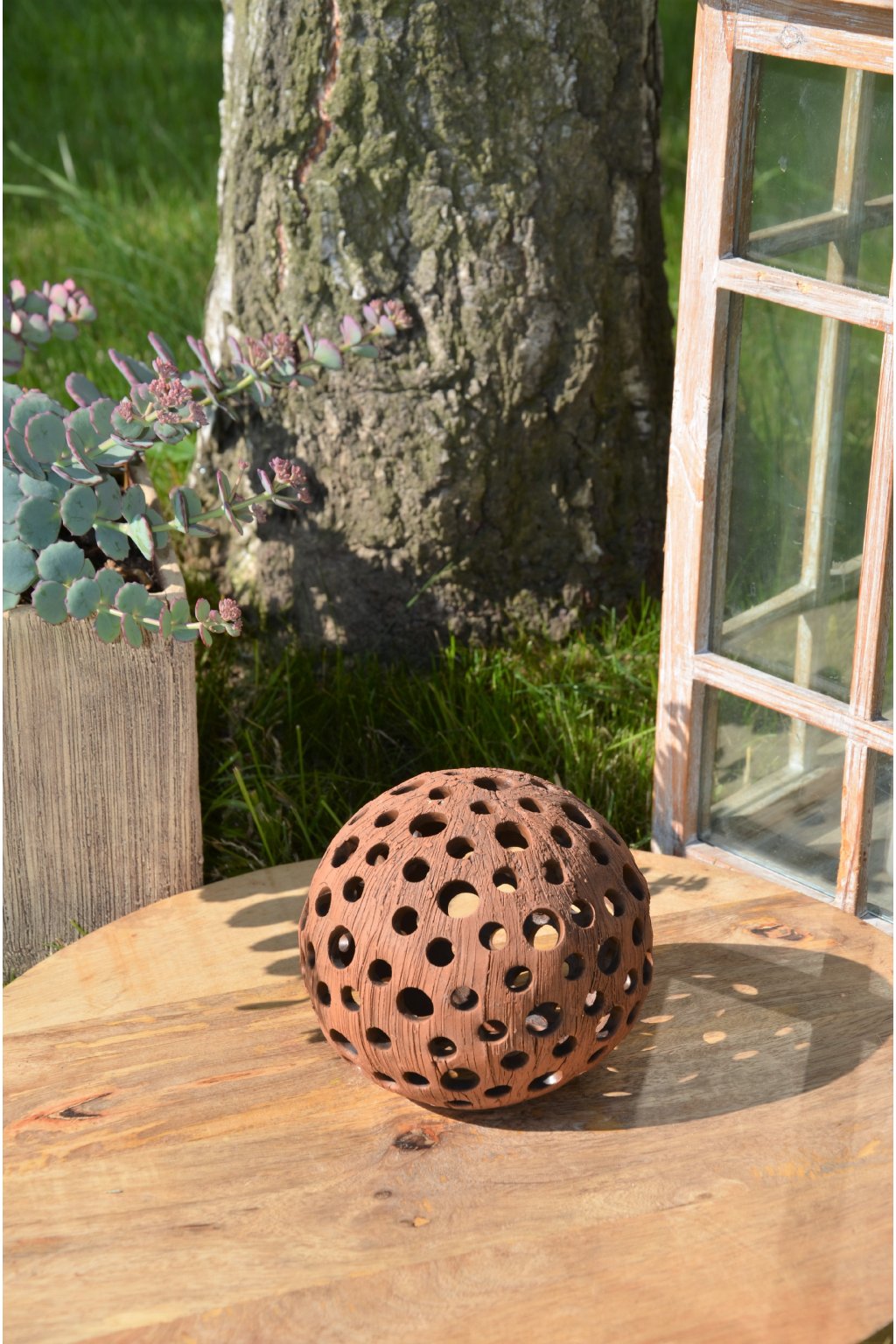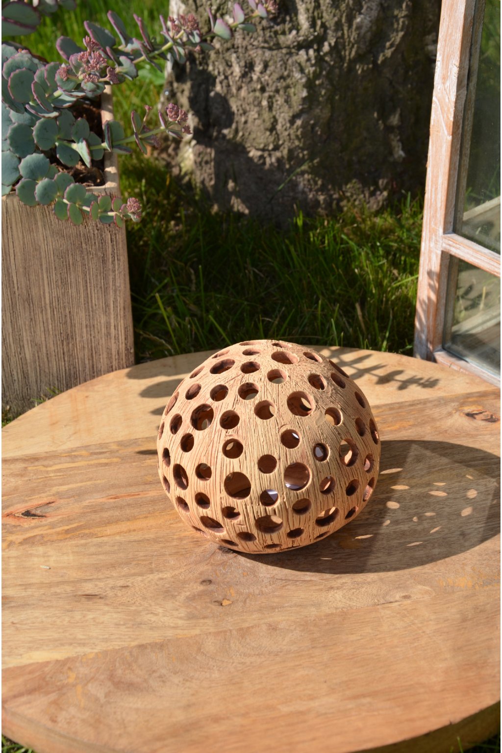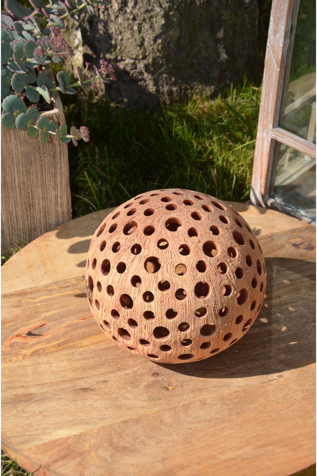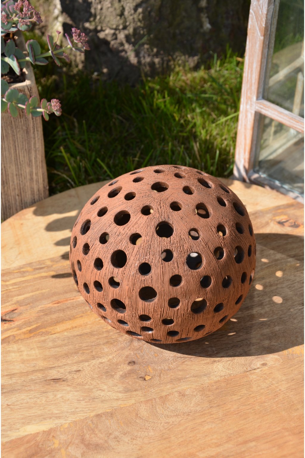 Popis: keramická dekorační koule s motivem kuliček - dekorační svícen do interiéru, zahrad, skalek, na terasu...
