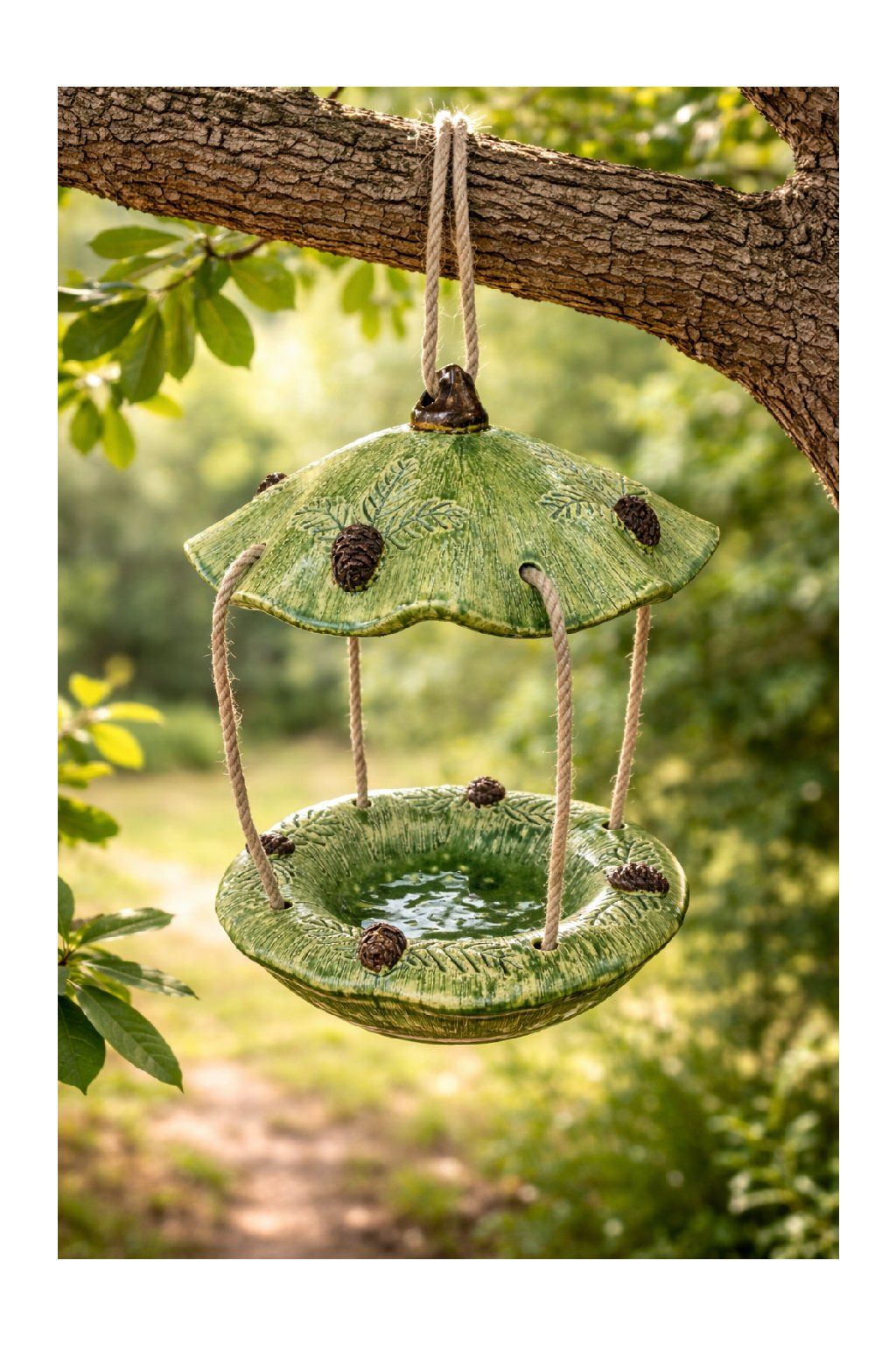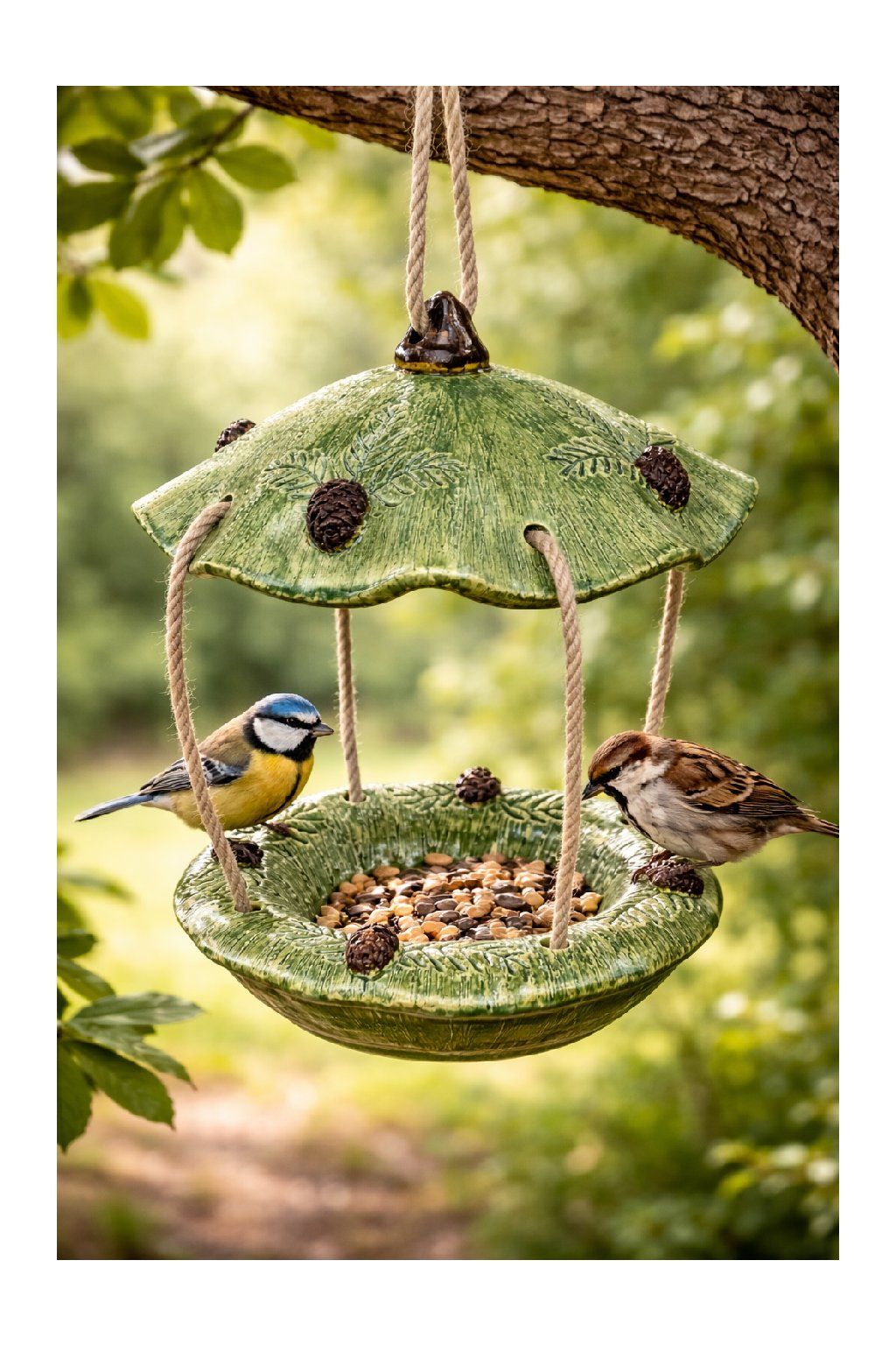 Keramické závěsné krmítko pro ptáčky – lesní kouzlo do vaší zahrady