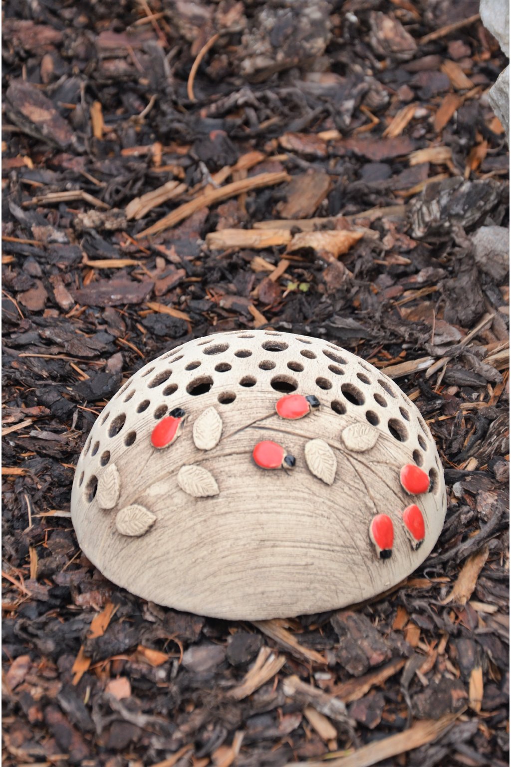 Popis: keramické dekorační půlkoule s podmiskou s různými dekóry - dekorační svícen do interiéru, zahrad, skalek, na terasu...