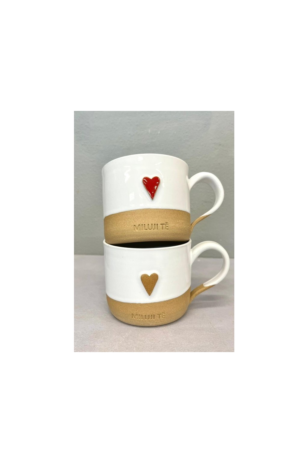 Elegantní keramický hrníček s jemným reliéfem srdce a nápisem „MILUJI TĚ“ je krásným vyjádřením lásky v každodenním životě.