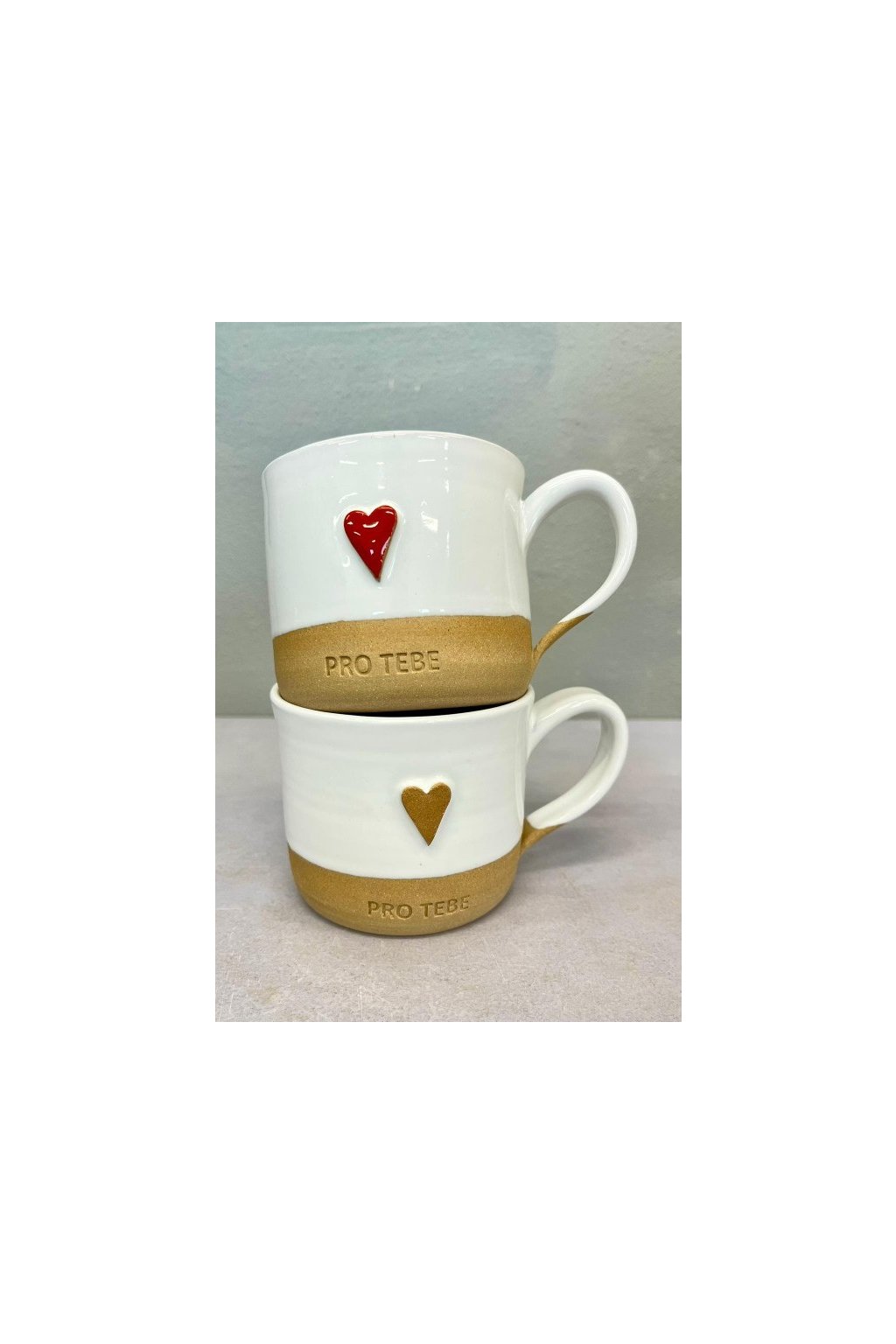 Elegantní keramický hrníček s jemným reliéfem srdce a nápisem „DĚKUJI“ je krásným symbolem pozornosti a radosti z obdarování.