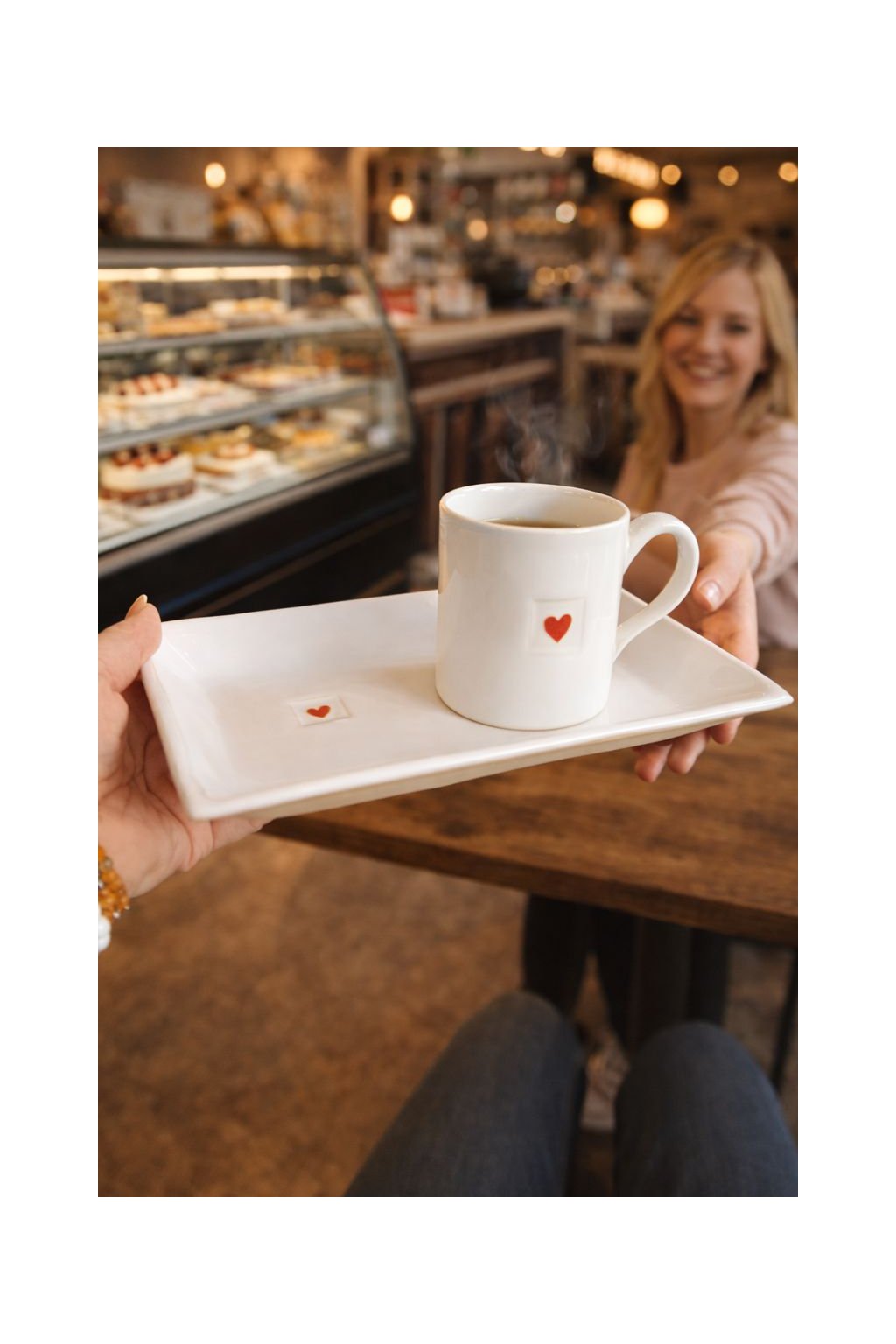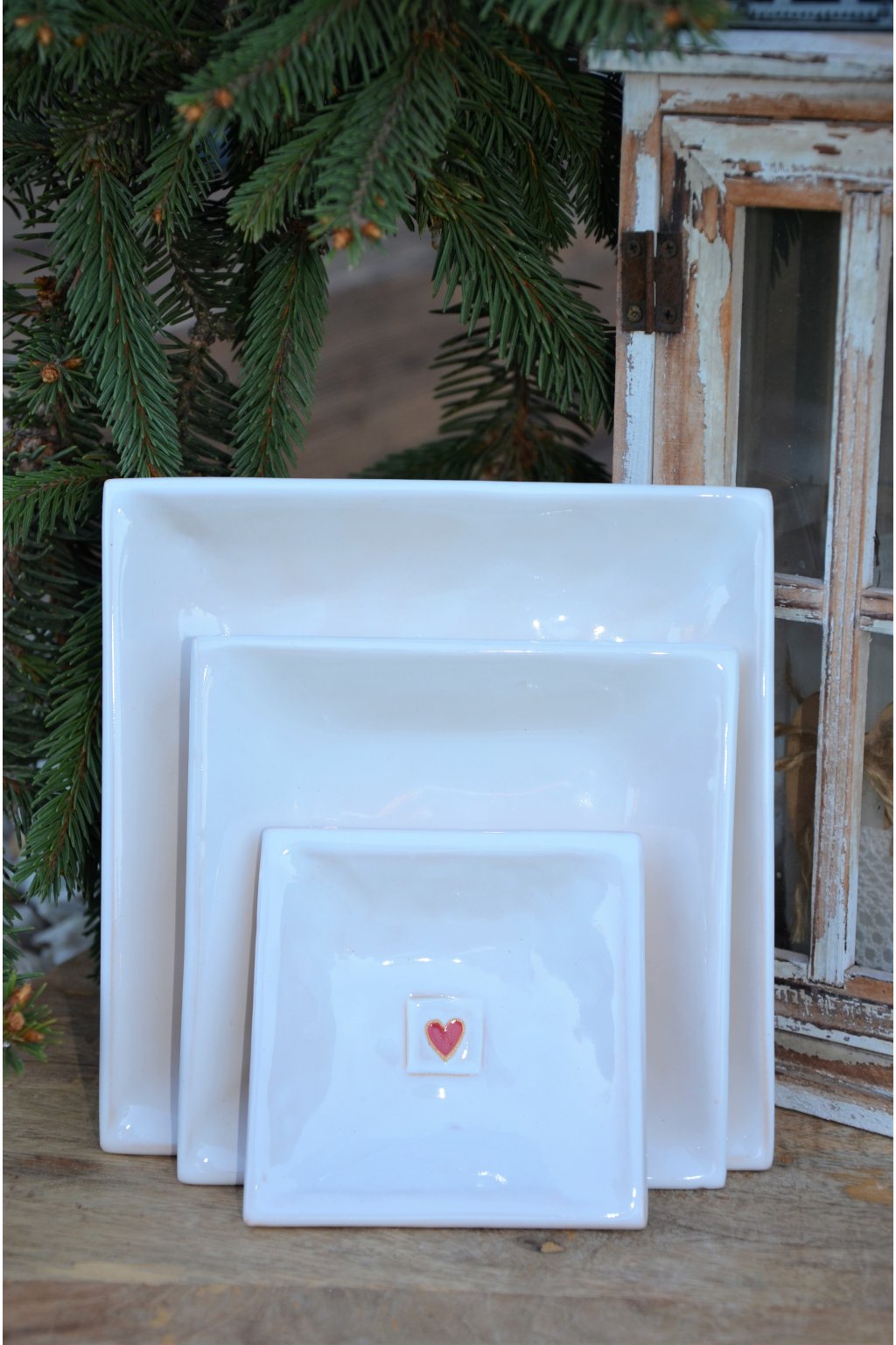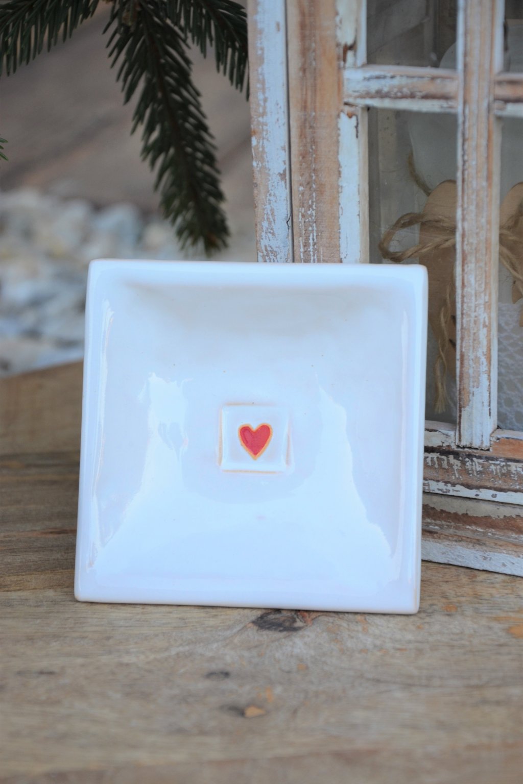 Popis: keramické tácky se vzorem malého červeného srdíčka - vhodné i k servírování potravin.