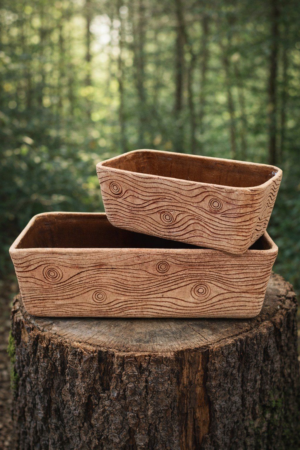 Popis: truhlíky ze šamotu s dekórem dřeva - krásná dekorace do zahrady, na terasu, na okno...