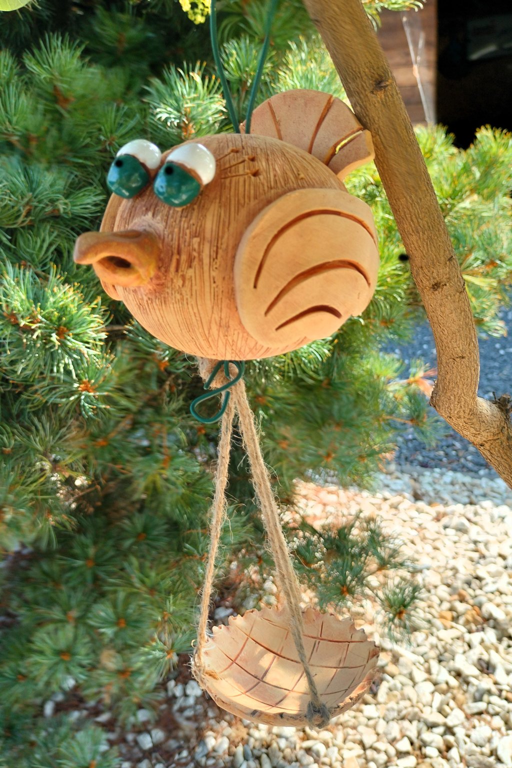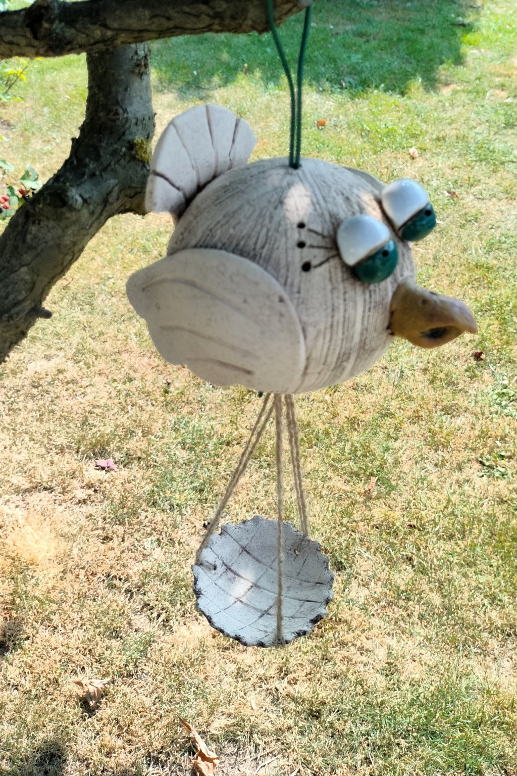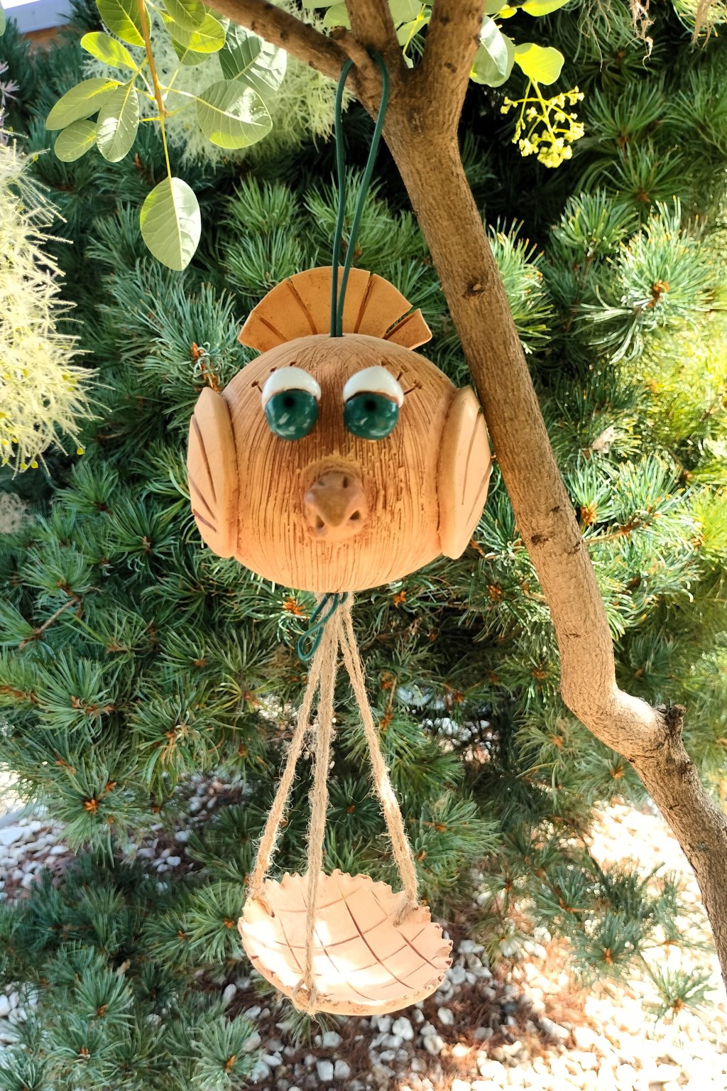 Popis: Keramická dekorace na zavěšení, slouží jako krmítko pro ptáčky.