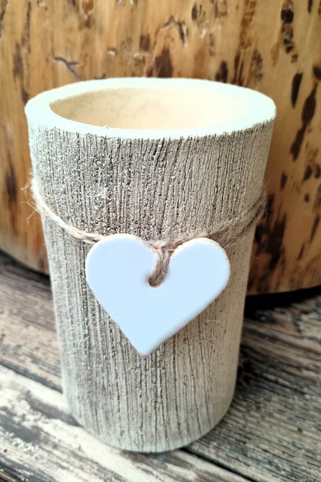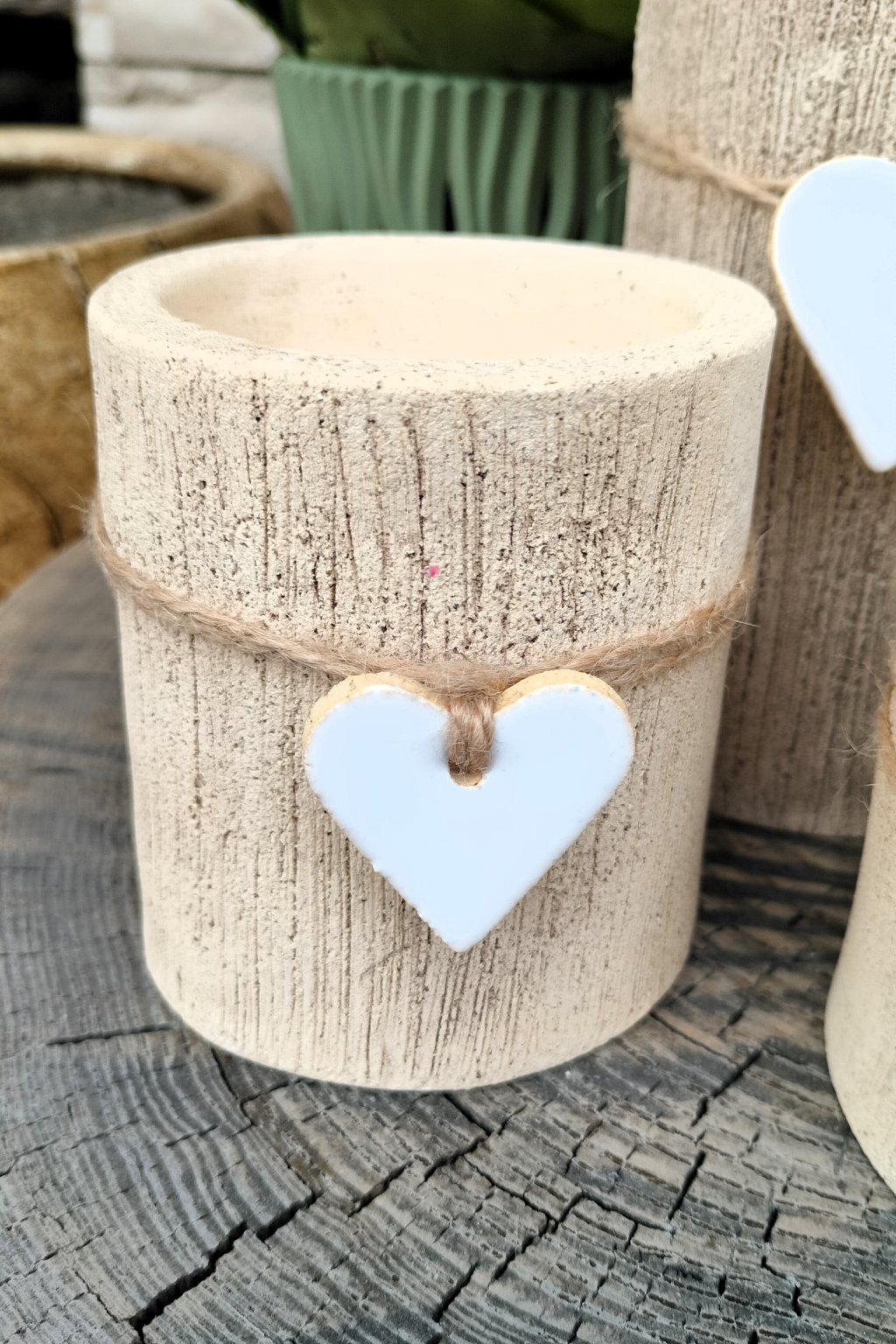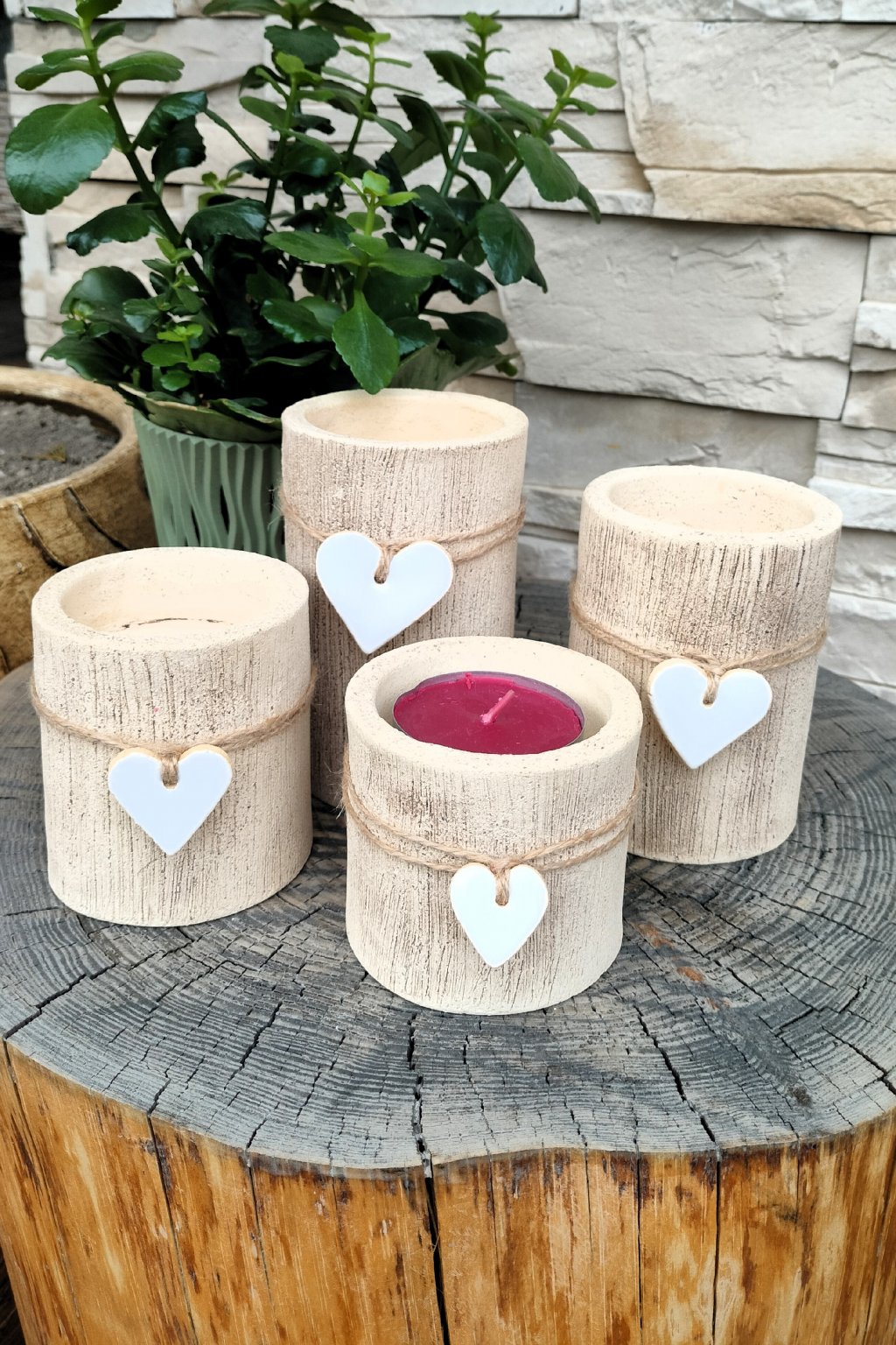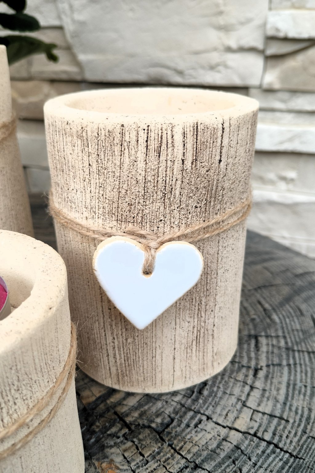 Popis: keramické válcové svícny s bílým srdíčkem - dekorace do interiéru nebo exteriéru...