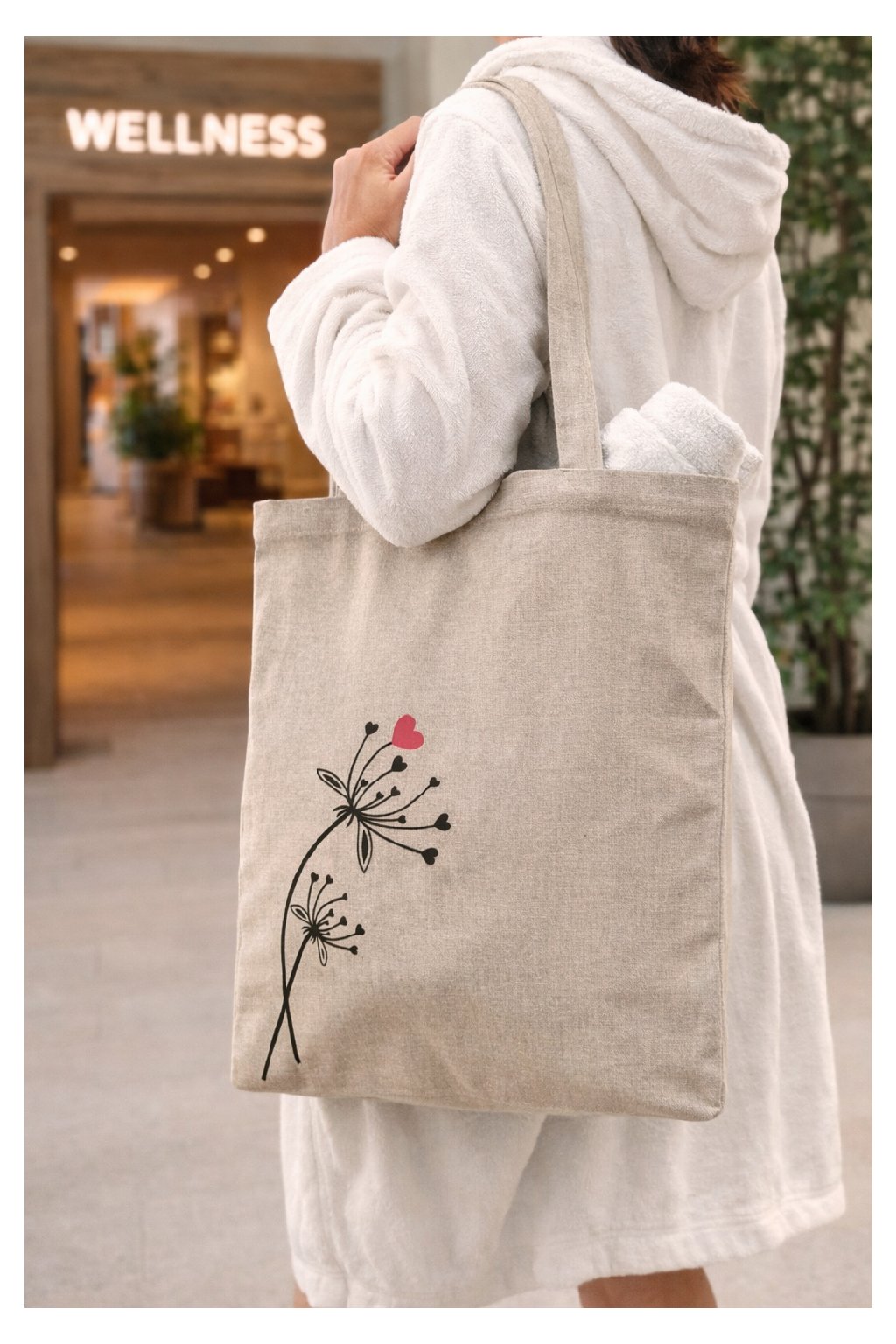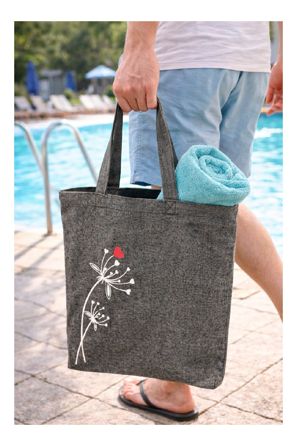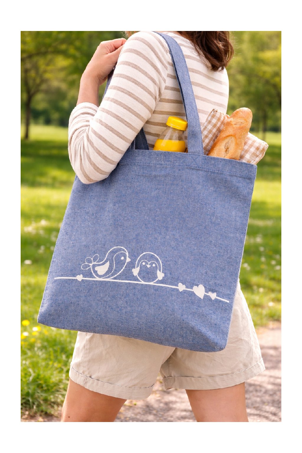 Jednoduchá recyklovaná bavlněná taška bez zipu je lehká, ale dostatečně pevná pro běžné denní potřeby nebo drobné nákupy.