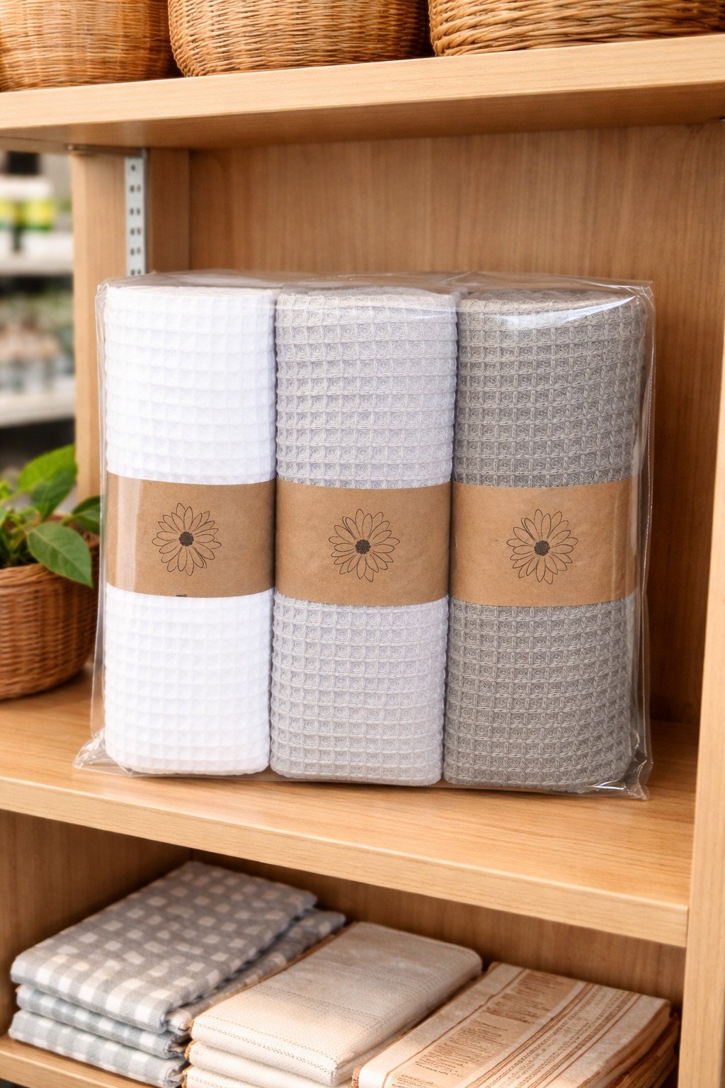 Popis: Dárkové balení 3ks vaflových utěrek.