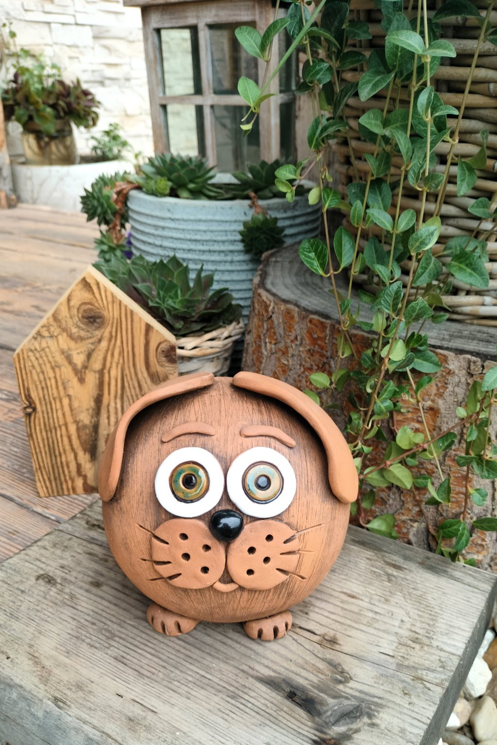 Popis: Keramický pejsek...dekorace do zahrad, skalek, na terasu...