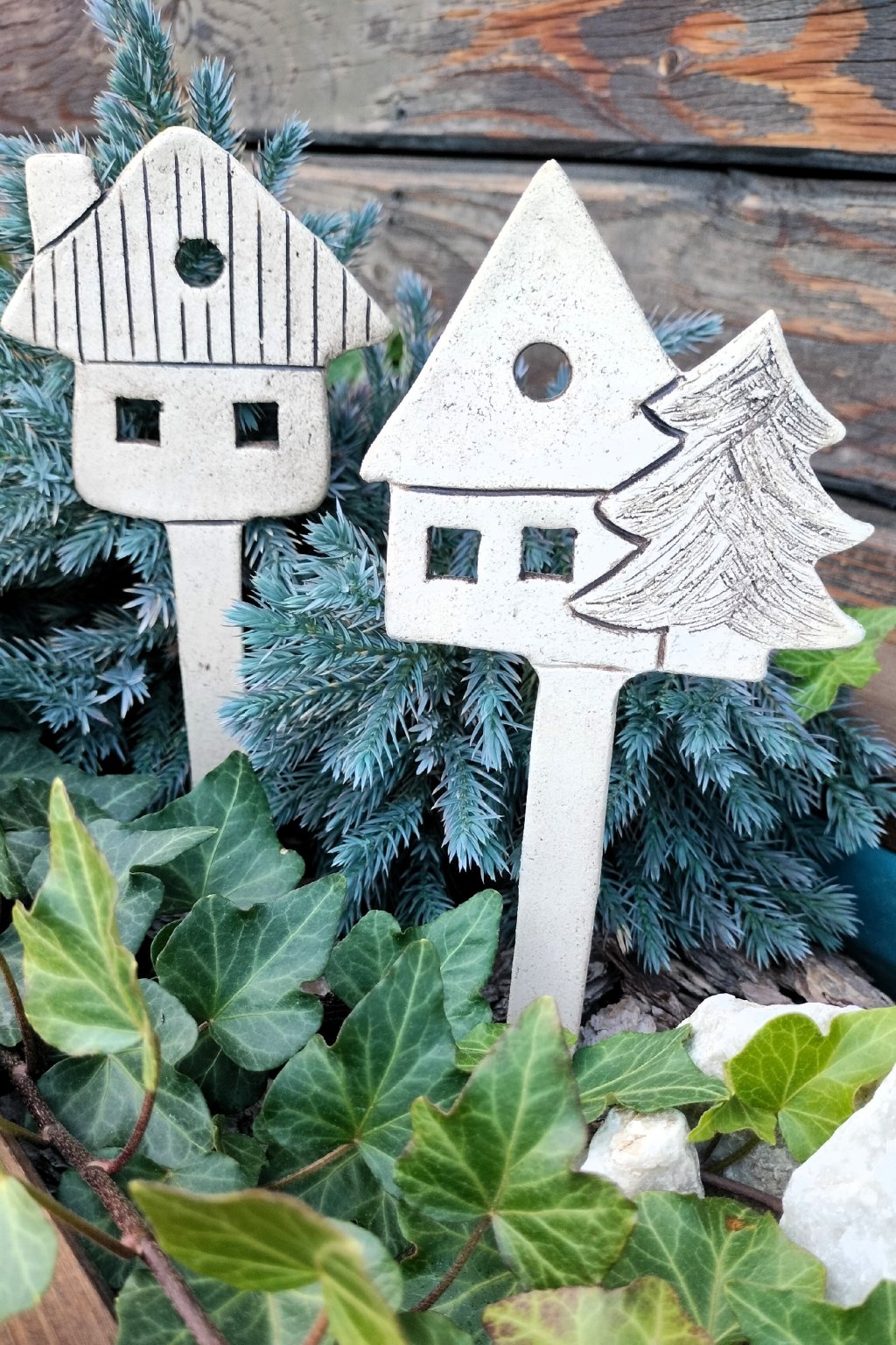 Popis: keramický zápich s domečky - dekorace do zahrad, skalek, květináčů, truhlíků...