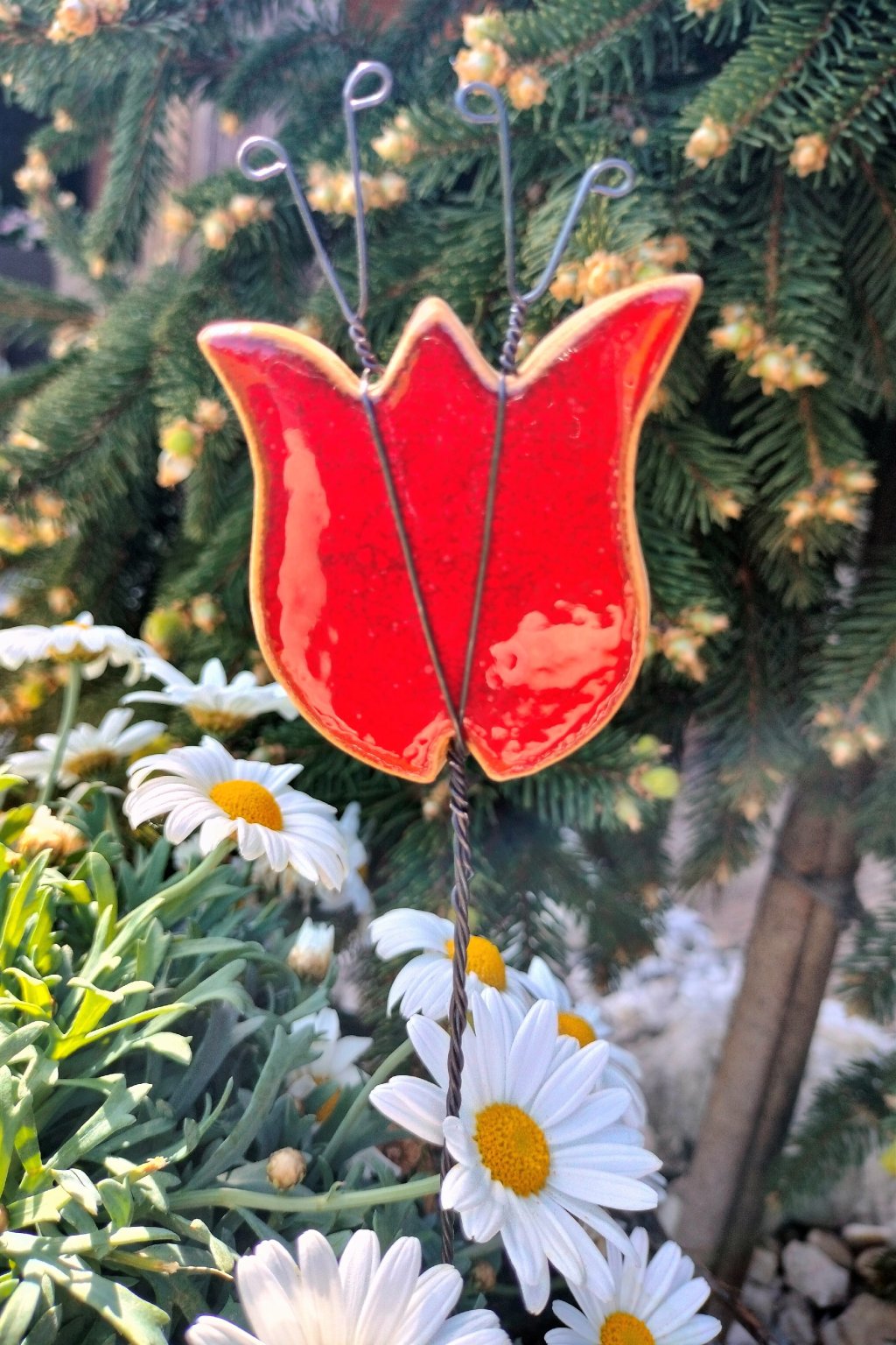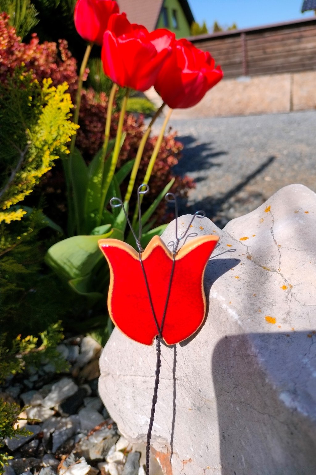 Popis: Keramický zápich s květem tulipánu na drátku...dekorace do květináčů, truhlíků...